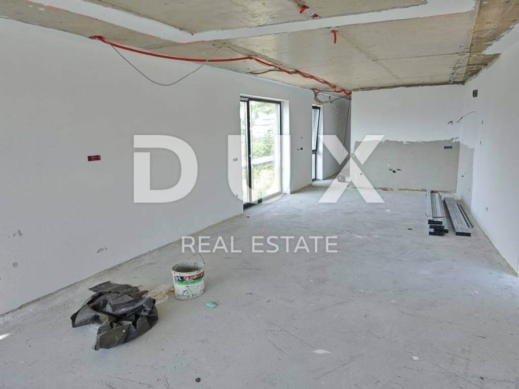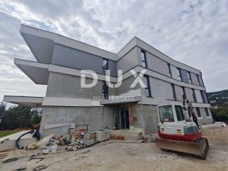 KOSTRENA - Apartment in a new building Kostrena, in the elite part known as the Alley of the Rich near the lungo mare promenade, an apartment of 126m2 for sale, located in a new urban villa of superior construction, design and equipment. It consists of an entrance hall, three bedrooms, one of which is a master bedroom with private bathroom, pantry (laundry), bathroom, kitchen with dining area and a spacious living room with access to a balcony of 14m2 and a garden of 70m2. The apartment has two parking spaces, one of which is outside, and one in the garage where the basement (woodshed). Heating by heat pumps, underfloor heating, high quality aluminum joinery, high quality sanitary ware. Attractive position, quiet and pleasant location, close to various facilities needed for quality life, school, kindergarten, sea, beaches, promenade ...