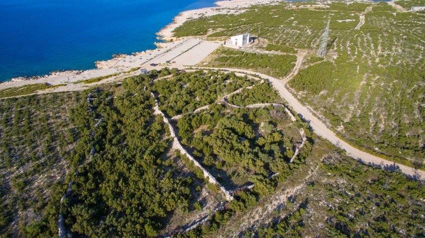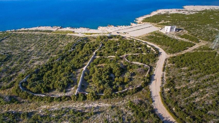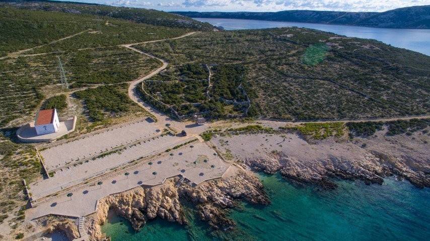Otok Pag, Novalja, teren od 1356 m prvi red do mora. Jedinstvena nekretnina na otoku pored mora privući će zaljubljenike u robinzonski turizam ili način života. Ravan teren okružen je suhozidom, trenutno nije u građevinskoj zoni, ali pogodan za kolibu ili suhu marinu.