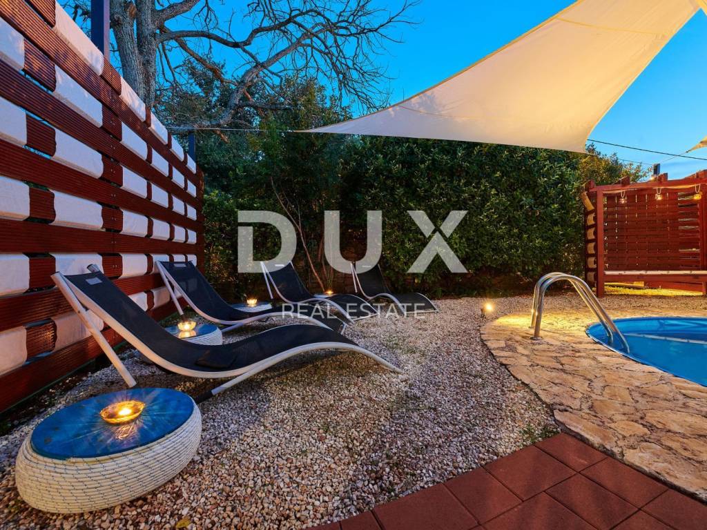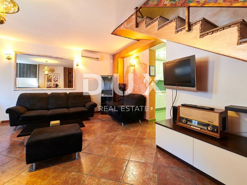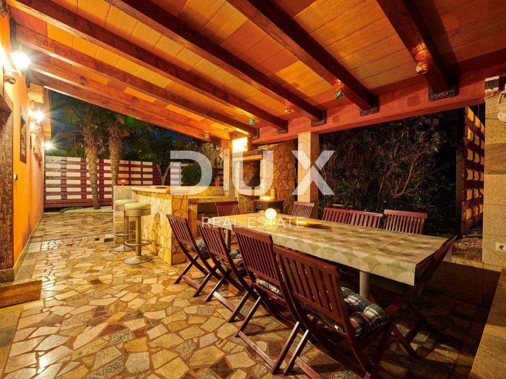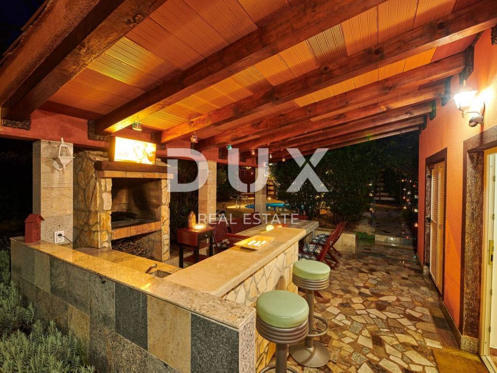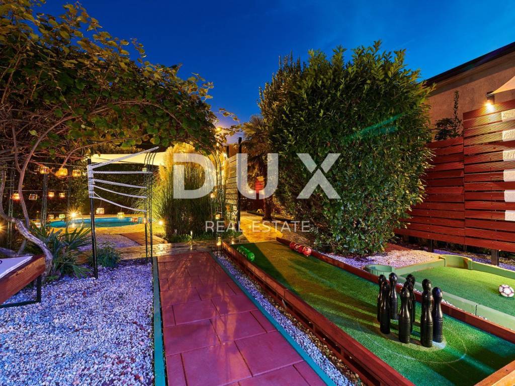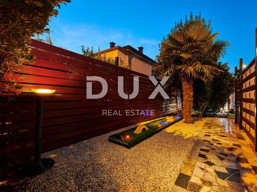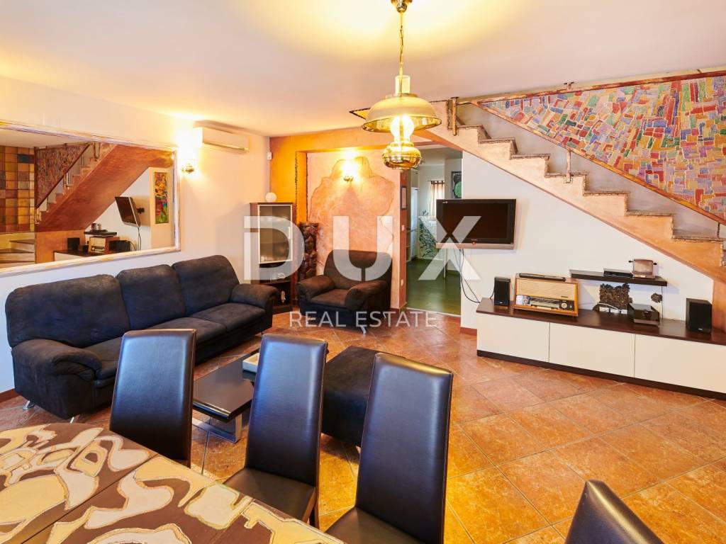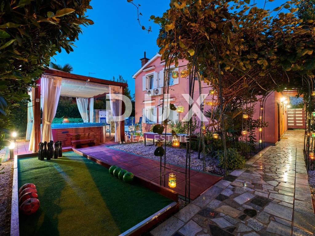 On the outskirts of Umag, on a plot of 700 m2, this villa is located on two floors, with a total area of 168 m2. The ground floor consists of a spacious living room connected to the kitchen and dining area, two bedrooms and two bathrooms. Internal stairs lead to the first floor where there are two bedrooms and one bathroom. The garden of the villa with a terrace, swimming pool and jacuzzi has additional sports facilities. Villa, categorized for 10 people for sale is furnished. This villa is an excellent opportunity for financial investment and renting for tourist purposes as well as for a quiet family life on the outskirts of the city, and yet close to all amenities.