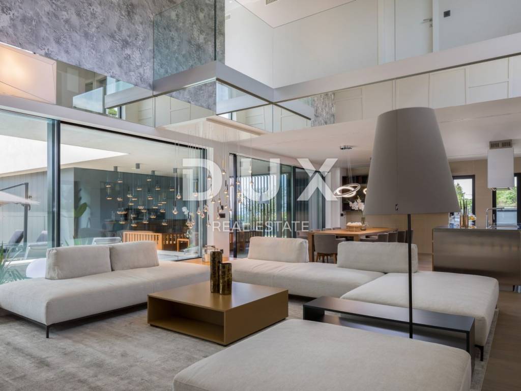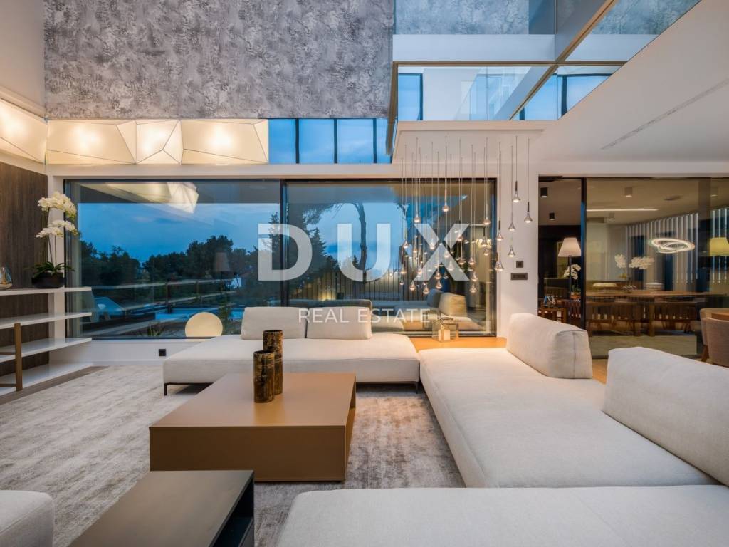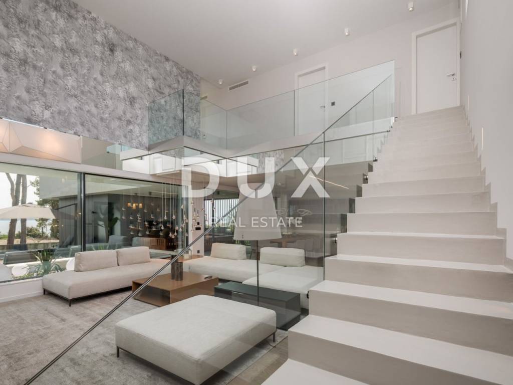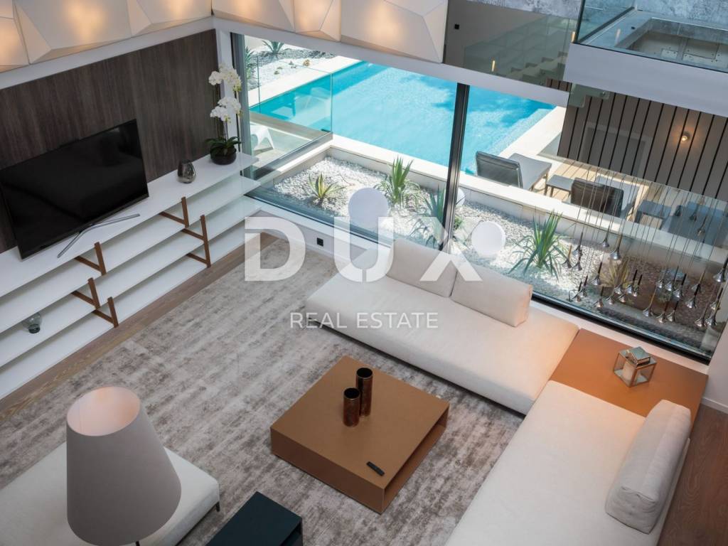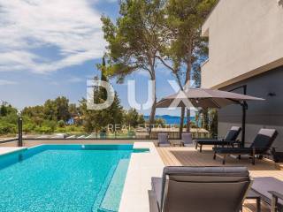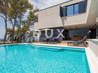 We are selling a beautiful villa, located north of the city of Zadar, in a sought-after location. It is only 1 km away from the beach and other social amenities. The villa is located on a large, fenced garden and offers complete privacy as well as a wonderful view of the sea and islands. In addition to the large overflow pool and sunbathing area, there is a summer kitchen with a barbecue and a space for socializing, as well as a paved courtyard, where you can park about 15 cars. The interior of the villa consists of a basement, ground floor and first floor. All floors are connected by internal stairs. In the basement there is a garage for two cars, a walk-through area, a laundry room and a house maintenance room. Below are the spa rooms and gym with access to the terrace and pool. The main entrance to the villa is on the ground floor. Down the hall you reach the living room with dining room and kitchen as a common space. Below is a bedroom with a bathroom and access to a covered terrace, then a study, a guest toilet, a storage room and another covered terrace. The first floor is divided into four bedrooms with private bathrooms and two covered terraces. One belongs to the main room and the other, with a jacuzzi, has access from all rooms. The villa is fully equipped and furnished. Top quality materials and equipment were used in the decoration, and carefully chosen details gave this property a special charm. The floors are ceramic and parquet. The cooling and heating system is via a heat pump; floor heating with thermostat is additionally installed in each room. The window frames are aluminum with mosquito nets and three-layer glass. The house is secured by video surveillance. Due to its attractive location, modern and functional decoration, this villa is not only an idyllic place for rest and relaxation, but also a great opportunity for tourism.