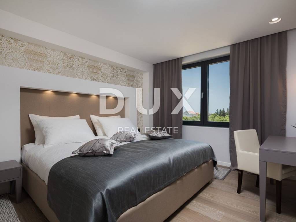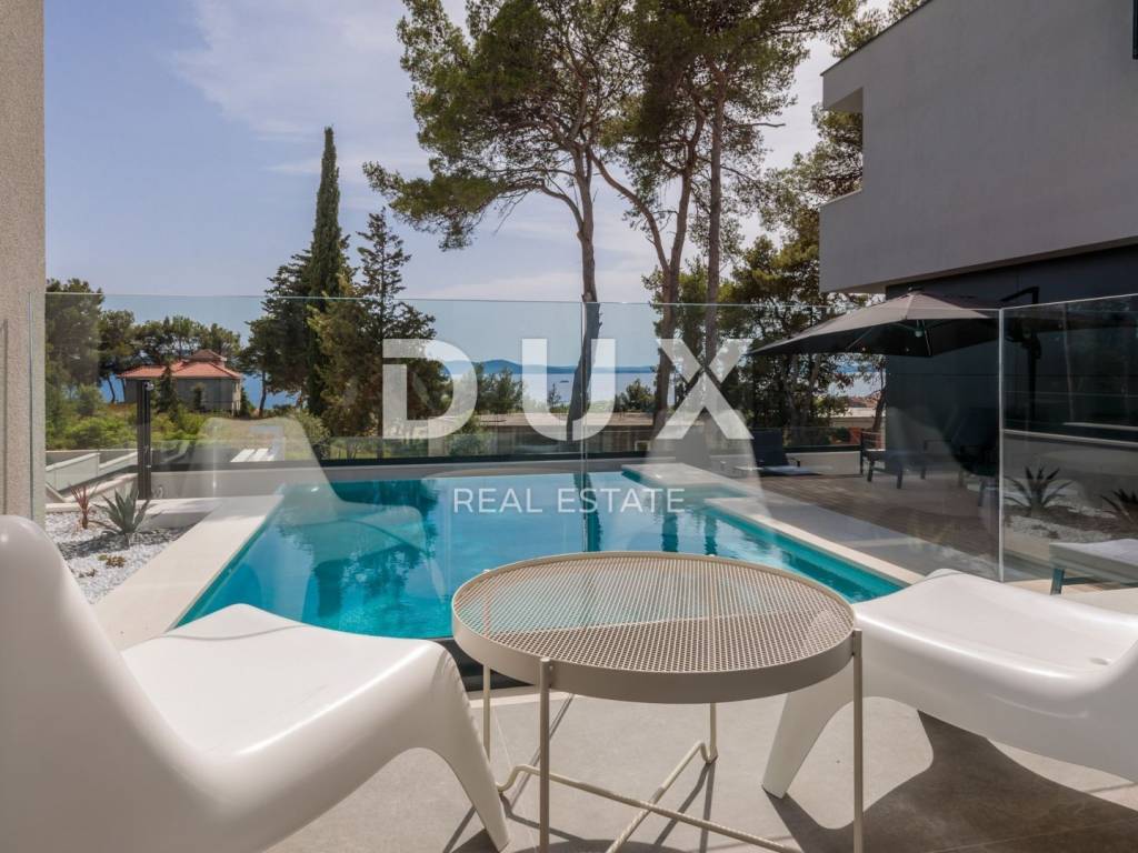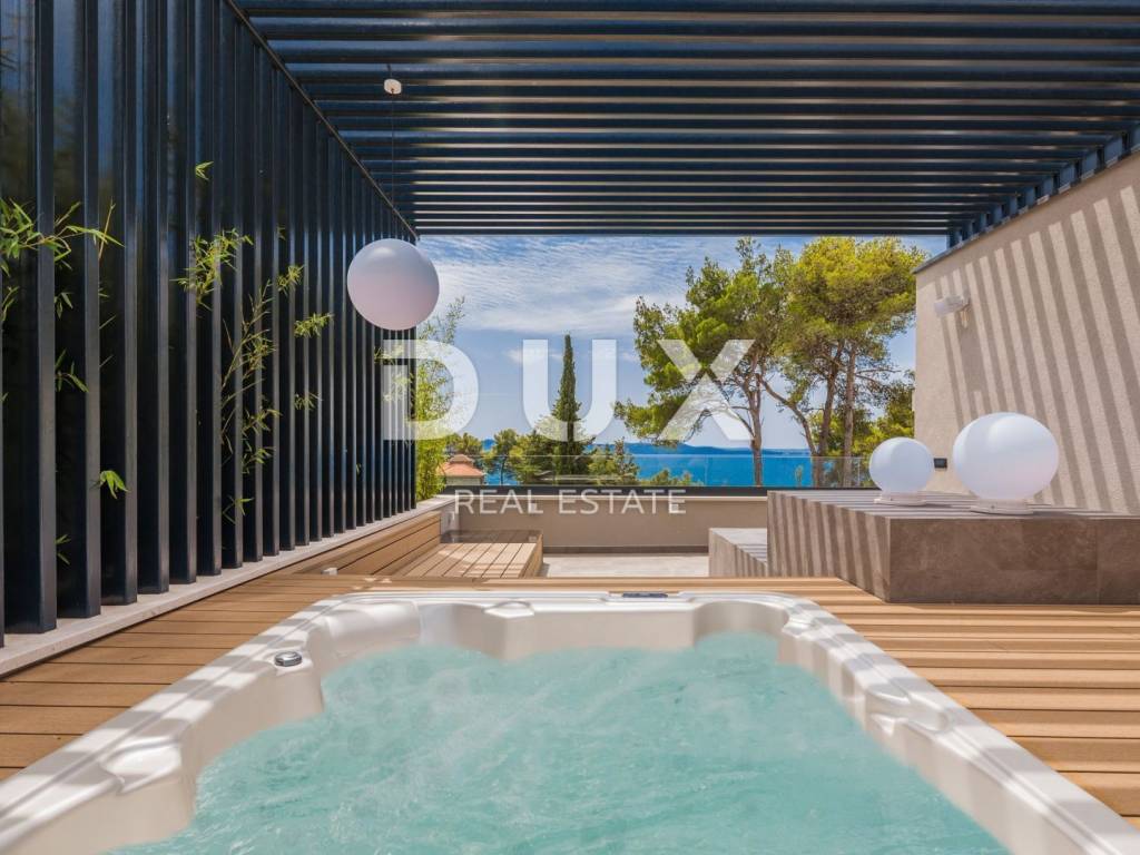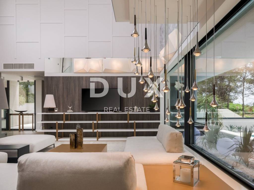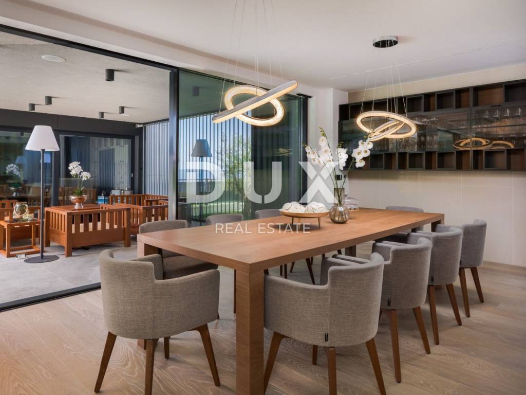 We are selling a beautiful villa, located north of the city of Zadar, in a sought-after location. It is only 1 km away from the beach and other social amenities. The villa is located on a large, fenced garden and offers complete privacy as well as a wonderful view of the sea and islands. In addition to the large overflow pool and sunbathing area, there is a summer kitchen with a barbecue and a space for socializing, as well as a paved courtyard, where you can park about 15 cars. The interior of the villa consists of a basement, ground floor and first floor. All floors are connected by internal stairs. In the basement there is a garage for two cars, a walk-through area, a laundry room and a house maintenance room. Below are the spa rooms and gym with access to the terrace and pool. The main entrance to the villa is on the ground floor. Down the hall you reach the living room with dining room and kitchen as a common space. Below is a bedroom with a bathroom and access to a covered terrace, then a study, a guest toilet, a storage room and another covered terrace. The first floor is divided into four bedrooms with private bathrooms and two covered terraces. One belongs to the main room and the other, with a jacuzzi, has access from all rooms. The villa is fully equipped and furnished. Top quality materials and equipment were used in the decoration, and carefully chosen details gave this property a special charm. The floors are ceramic and parquet. The cooling and heating system is via a heat pump; floor heating with thermostat is additionally installed in each room. The window frames are aluminum with mosquito nets and three-layer glass. The house is secured by video surveillance. Due to its attractive location, modern and functional decoration, this villa is not only an idyllic place for rest and relaxation, but also a great opportunity for tourism.