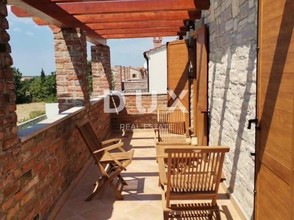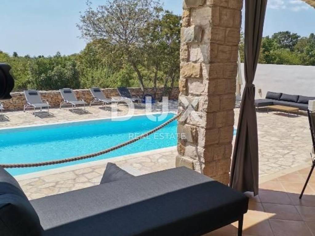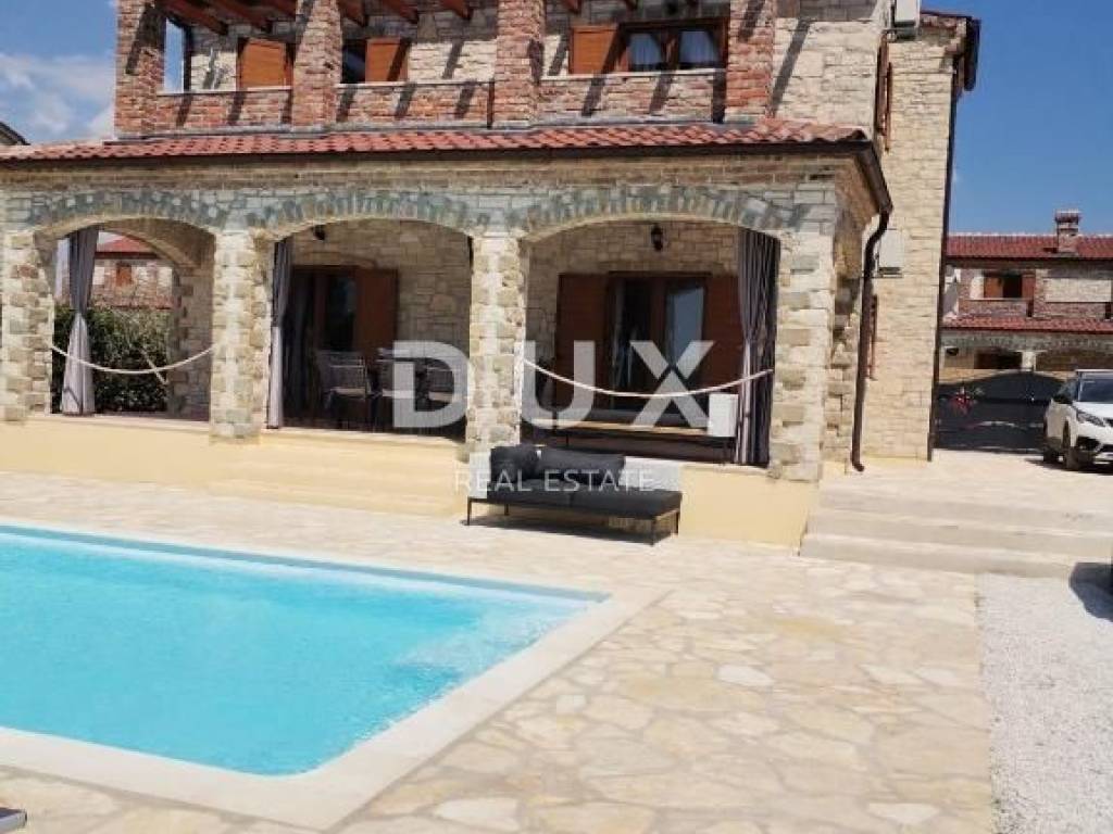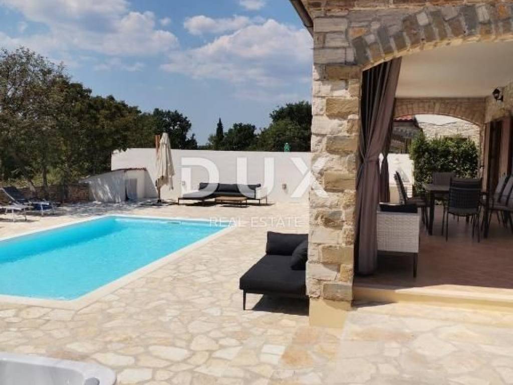 ISTRIA, SVETVINČENAT - Stone villa with pool, whirlpool and sea view!!!! The Renaissance town of Svetvinčenat is one of Istria's jewels with a rich tourist offer and numerous events held in the attractive historical spaces of this town. Svetvinčenta is adorned with a Renaissance square with a castle, which is the symbol of the place itself. This special town with a rich tradition, its interesting and varied programs, the most prominent of which are the Medieval Festival, the Cheese Festival and the Dance and Non-Verbal Theater Festival, attracts many visitors every year. Not far from Svetvinčent, in a quiet village, there is a beautiful stone villa with a swimming pool on two floors with a total living area of 145m2. The house consists of a living room with a fully equipped kitchen and dining room, four bedrooms, 3 bathrooms and a terrace. In the yard of 400m2 there is a private swimming pool. The yard is surrounded by a stone wall, which ensures privacy. The distance from the largest Istrian city of Pula is 20 km, from Vodnjan 10 km, and Fažana 15 km. It is categorized as a holiday home, so it can bring a lucrative business to the future Owner. Dear clients, the agency commission is charged in accordance with the General Business Conditions: www.dux-nekretnine.hr/opci-uvjeti-poslovanja