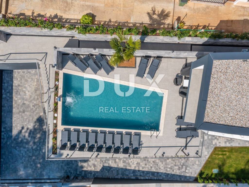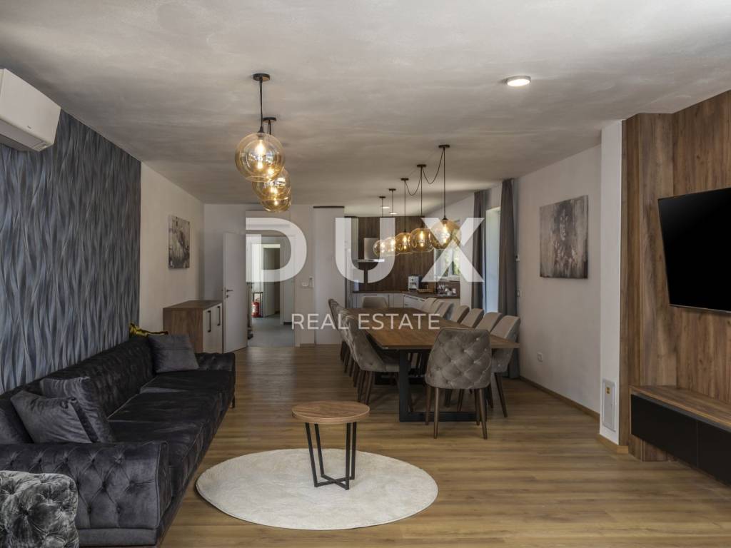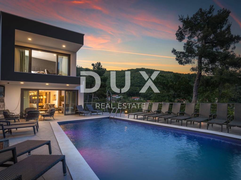 In the immediate vicinity of the sea, surrounded by greenery, there is a private villa of unique character on the Opatija Riviera. This modern example of construction was built on a 1230m2 plot with a view of the sea. The interior is equipped with custom designer furniture, this year. The house has the following layout: GROUND FLOOR: hallway, bedroom with en-suite bathroom, toilet, and large open space living room with kitchen and dining room and access to the terrace and heated pool FIRST FLOOR: three bedrooms with en-suite bathrooms, large balcony south orientation communicating from one bedroom BASEMENT: two bedrooms with en-suite bathrooms, office, wellness area with jacuzzi, sauna, exit to the garden. The open space living room concept is an important part of this beautiful house. From all the southern windows and glass walls there is a view of the sea and the greenery of Kvarner. The 34m2 pool has a heating system via a heat pump, modern LED lighting and a counter-floating pump. The house generally has an alarm system, video surveillance, garden, paved parking space for 4 vehicles. The villa is arranged according to the 5-star categorization standard, and with the mediation of this house, consultation regarding further renting in the future is possible (care of the entire building, property management, property rental). This property is owned by the company, and the price is 2,000,000 + VAT if you are buying as a legal entity (with the possibility of submitting a request for a VAT refund). If the house is bought as a natural person, the price with VAT is 2,500,000. A rarity on the market, - a perfect family residence or a great investment that can be rented carefree through a property manager.