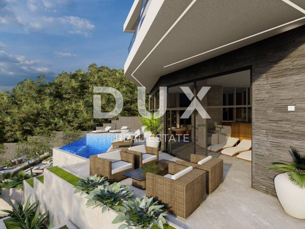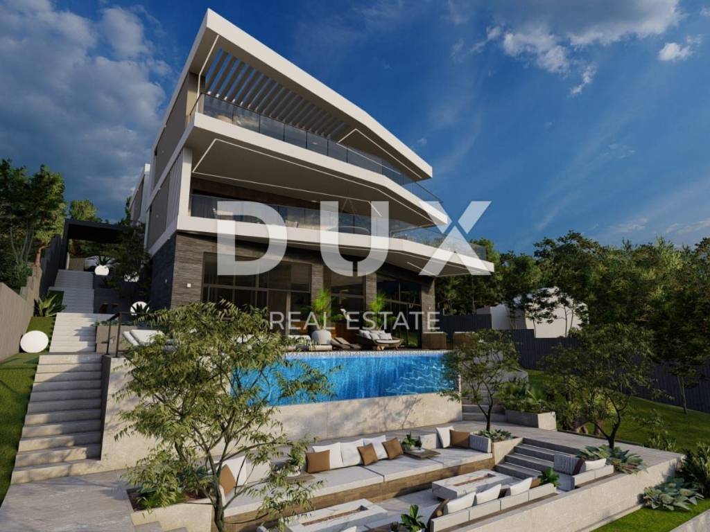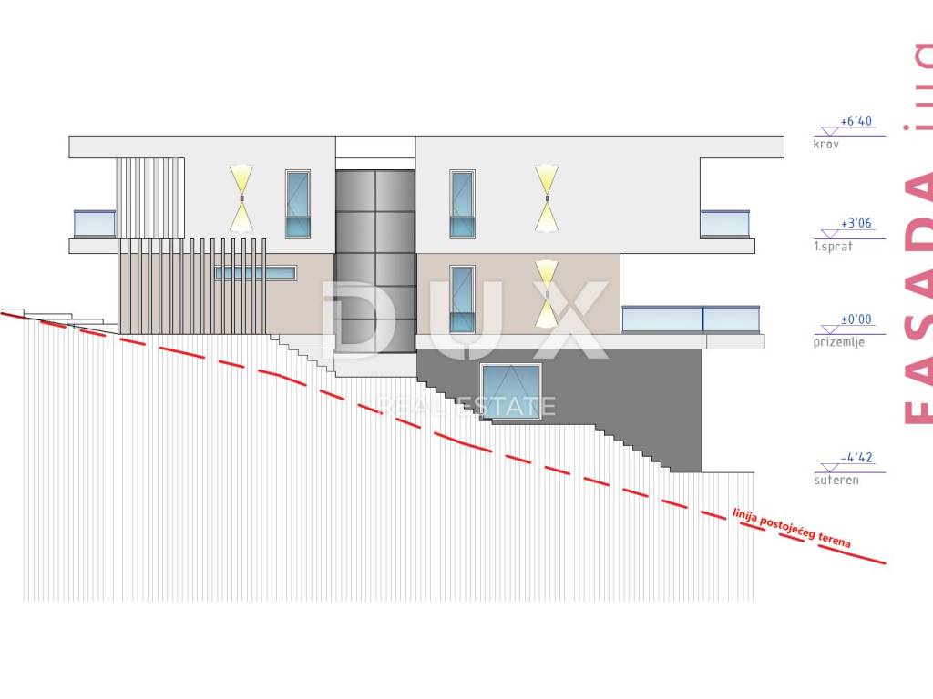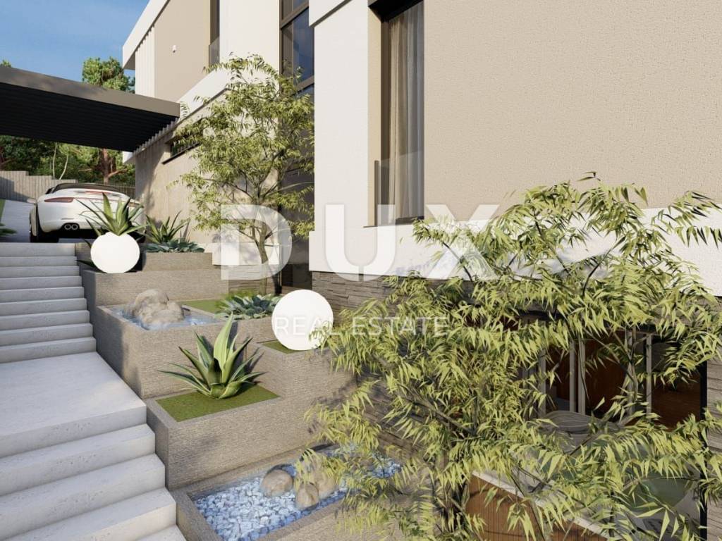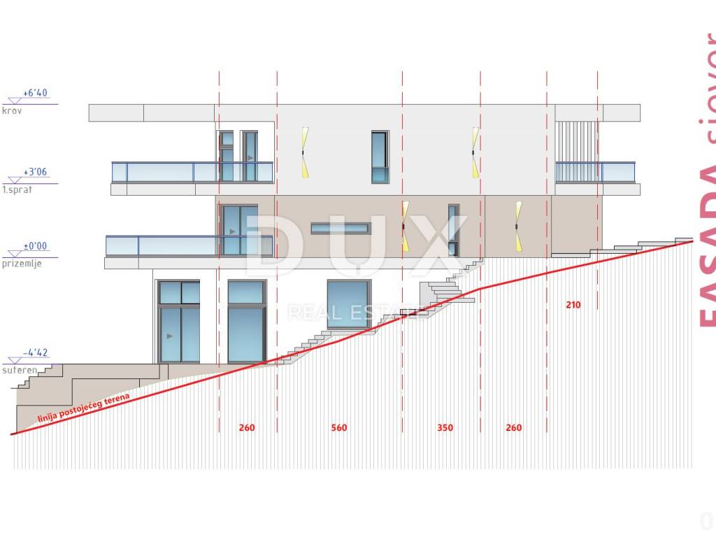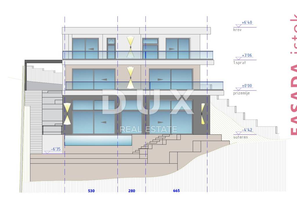 OPATIJA, MEDVEJA- građevinsko zemljište 1414m2 s pogledom na more s građ. dozvolom za obiteljsku kuću / villu / apartmane / kuću za iznajmljivanje - odmor s bazenom