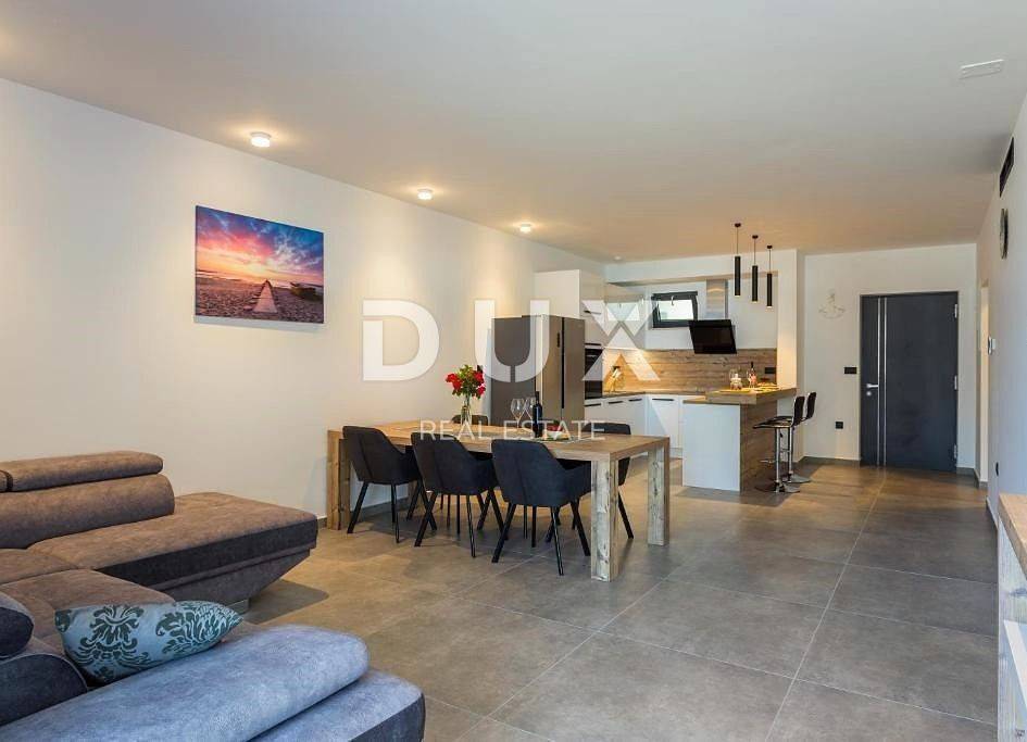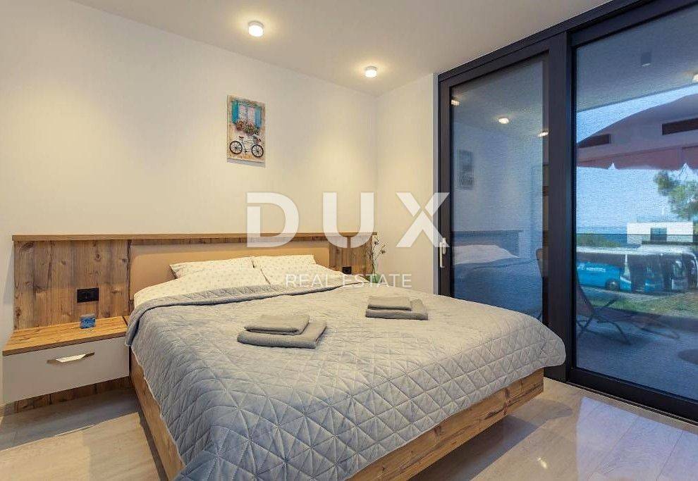 In Fažana, 80 meters from the beach, a luxurious apartment by the sea is for sale. The apartment is located in a two-story residential building of superior construction, equipment and design. The yard of the luxurious new building is fenced and the parking spaces are paved. In addition to a parking space, each apartment also has a storage area of approx. 6 m. The carpentry in this urban building is aluminum with electric shutters and mosquito nets, and the doors are burglar-proof. It is equipped with underfloor heating/cooling via a heat pump. All apartments are completely fully equipped and custom-furnished and are sold as such. The subject apartment of 96 m is located on the first floor of the building. It consists of a living room with dining room and kitchen, bedroom, bathroom, toilet and laundry room. The living room and bedroom have access to a spacious terrace with an unobstructed view of the sea. This luxurious new development within walking distance of shopping, cultural, educational and recreational facilities is the perfect property whether it is a family home or rental. The seller is a legal entity, therefore the buyer does not pay real estate sales tax.