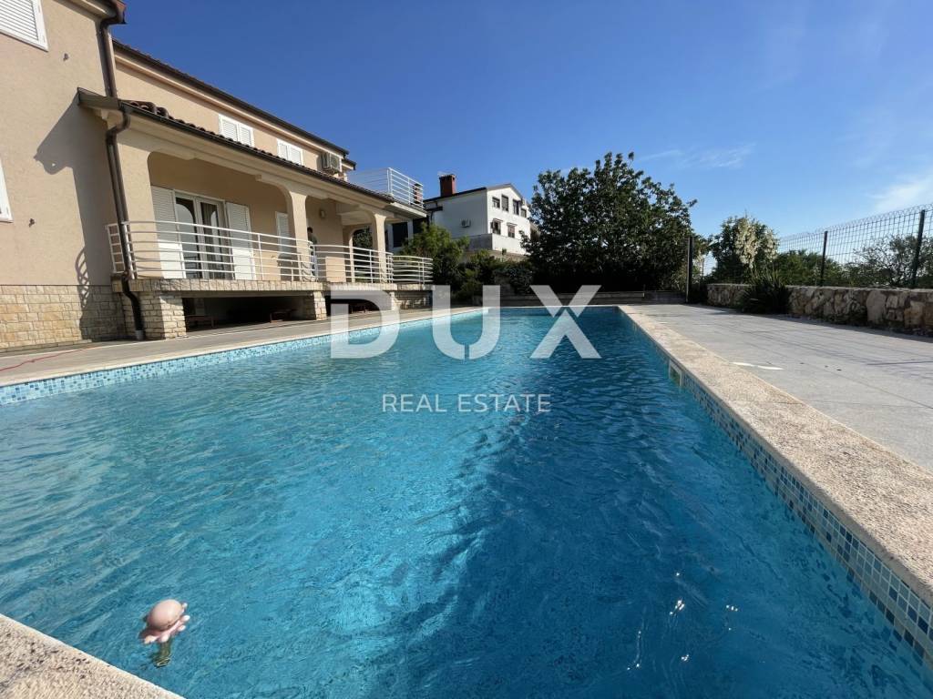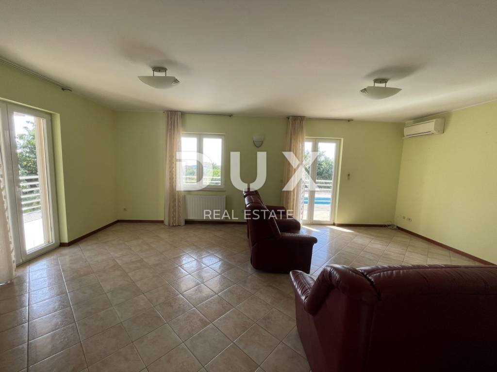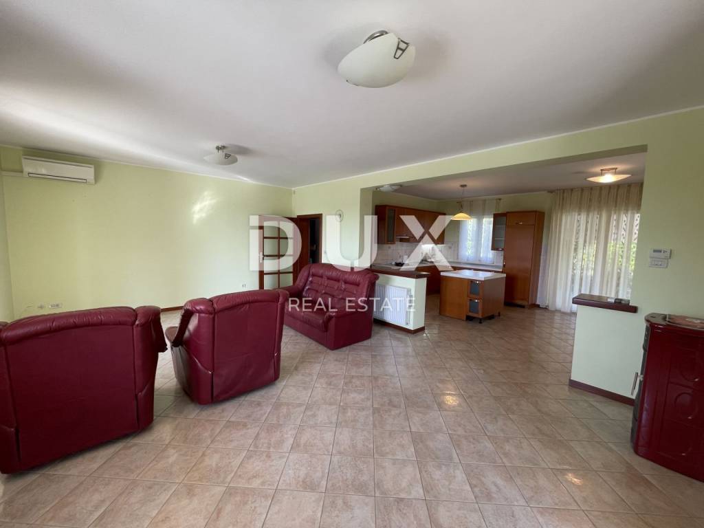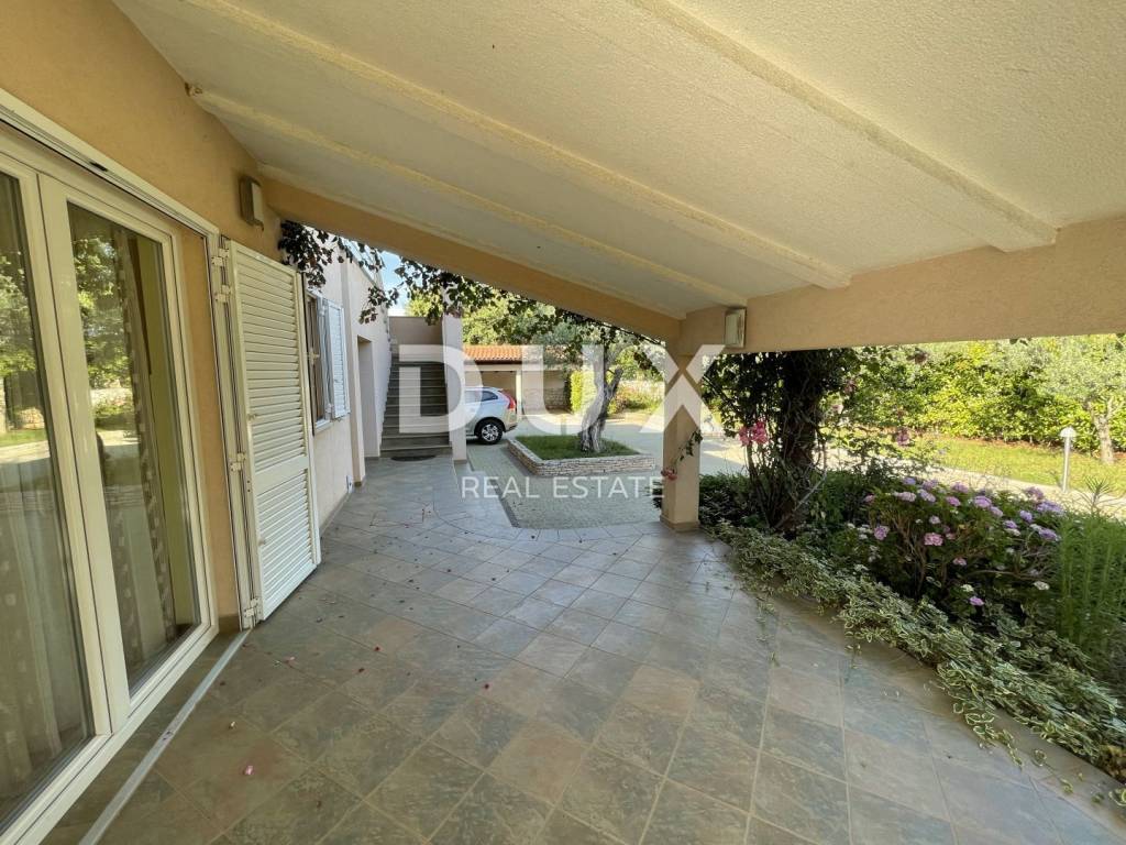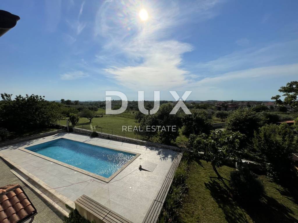 Precisely in Rovinjsko selo is a beautiful house with a direct view of the sea on one side and the Istrian hills on the other. The house consists of two separate apartments, the first apartment is on the ground floor and the second apartment is located on the first floor. The total size of the house is 258 m2 located on as many as 1203 m2 beautifully landscaped garden. Entering the ground floor of the house we enter the first apartment. The lower apartment consists of a living room with kitchen, one toilet, bathroom, two bedrooms, storage room and wardrobe. The rooms have parquet that is healthy and preserved, and through the apartment on the ground floor it is possible to go to the terrace with a beautiful sea view. Heating is via air conditioning, and in addition to air conditioning throughout the house is central heating. In the living room there is also a stove with which you can heat with wood or pellets. Outside the house there is a staircase leading to the first floor where the second apartment is located. The upper apartment consists of a kitchen and dining room, living room, storage room, toilet, bathroom and four bedrooms, one of which has access to the terrace. The upper terrace offers an unforgettable view of the sea and the Istrian hills. Air conditioners and central heating are installed throughout the house, and the house has all the necessary infrastructure and additional systems such as an alarm system with sensors and the Internet. The garden is arranged and regularly maintained. Behind the house is a 12x4 meter pool with Roman stairs and a mosaic built in 2018. In the rest of the yard there is a garden with several types of plants such as palm trees, magnolias, pomegranates and olive trees, then a summer kitchen (tavern) with a fireplace and its own private toilet and a small house with tools that can be converted into another species. object. From the side of the pool, it can be lowered into the basement, which is decorated and has its own air conditioning, and can be used to store various inverters from the pool and garden maintenance devices. In addition to the summer kitchen, there is a covered parking space for two cars, while at least two more cars can be parked in the rest of the yard at the entrance to the yard. The house currently has its own septic tank, but there is also a sewer that only needs to be connected to the septic tank. There is automatic irrigation in the whole yard so you don't have to worry about watering the garden and plants, and also on one side of the yard there is a water connection to which it is possible to connect a hose and water the plants by hand. Rovinj village is located near the town of Rovinj and is 6 km from the sea. Rovinj has all the main facilities needed for a comfortable life of every family. Apart from living, the house can also be used for rent during the season, given the popularity of Rovinj and the Rovinj village.