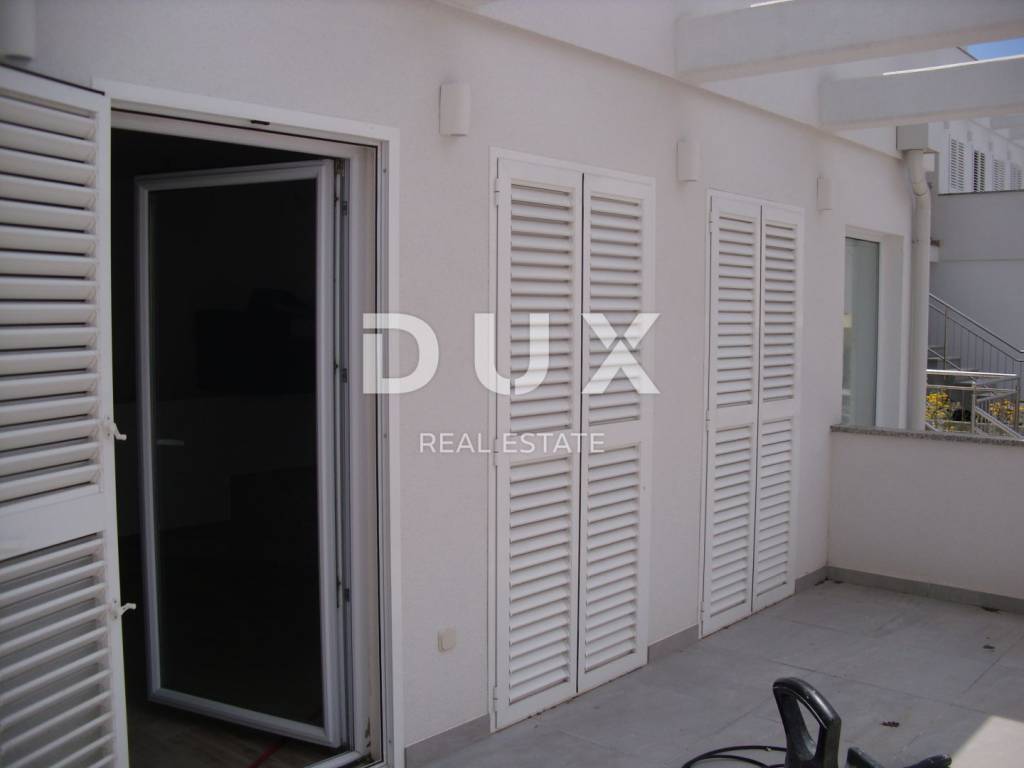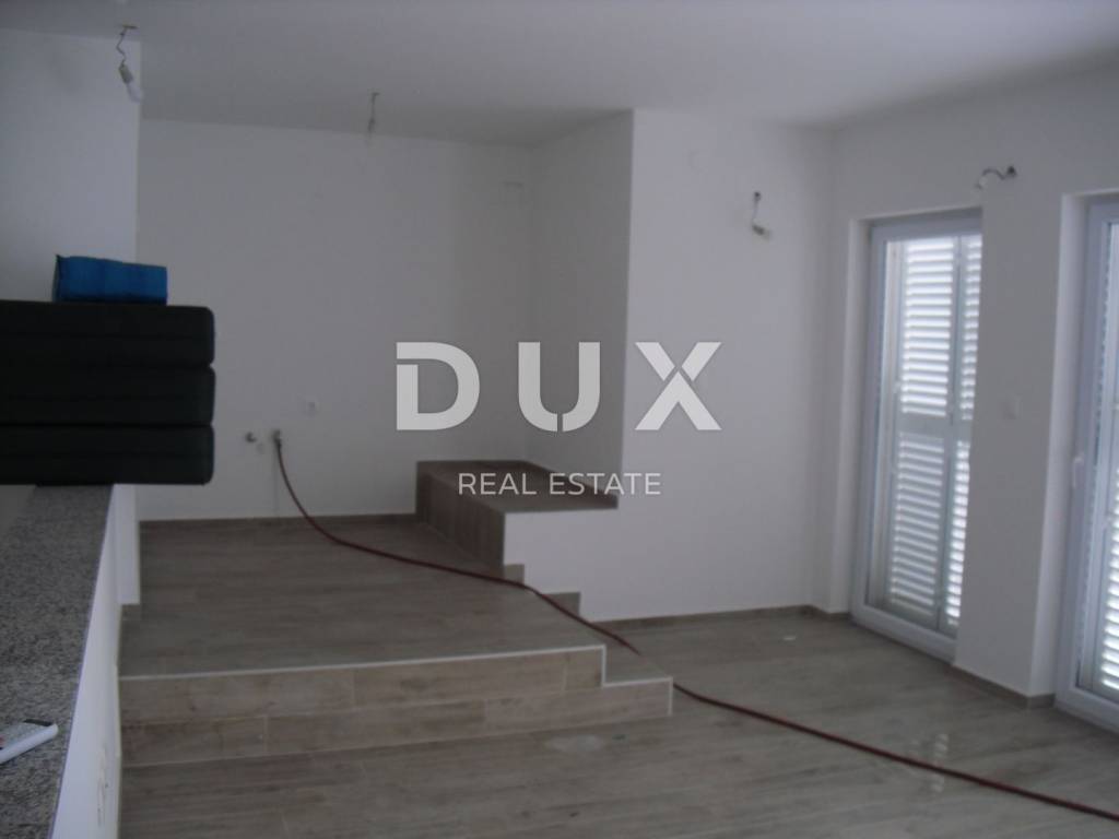 Near all amenities offered by the center of Malinska and 400m from the beach, this beautiful apartment for sale in a newer building. Duplex apartment consists of a ground floor with hallway, bathroom, storage room and bedroom while on the first floor there is an open space living room with kitchen and dining area, loggia and a beautiful spacious terrace. It is equipped with quality floor coverings and sanitary ware and security doors and is air conditioned. The apartment has a storage room in the basement of 4.13 m2 and one parking space of 15.03 m2.