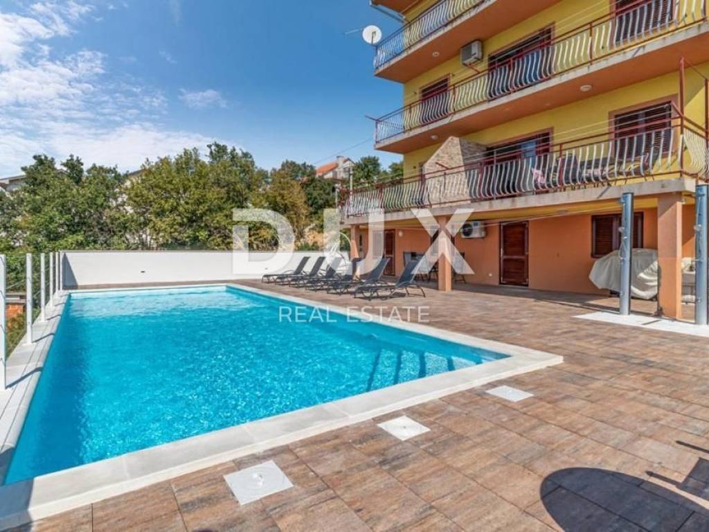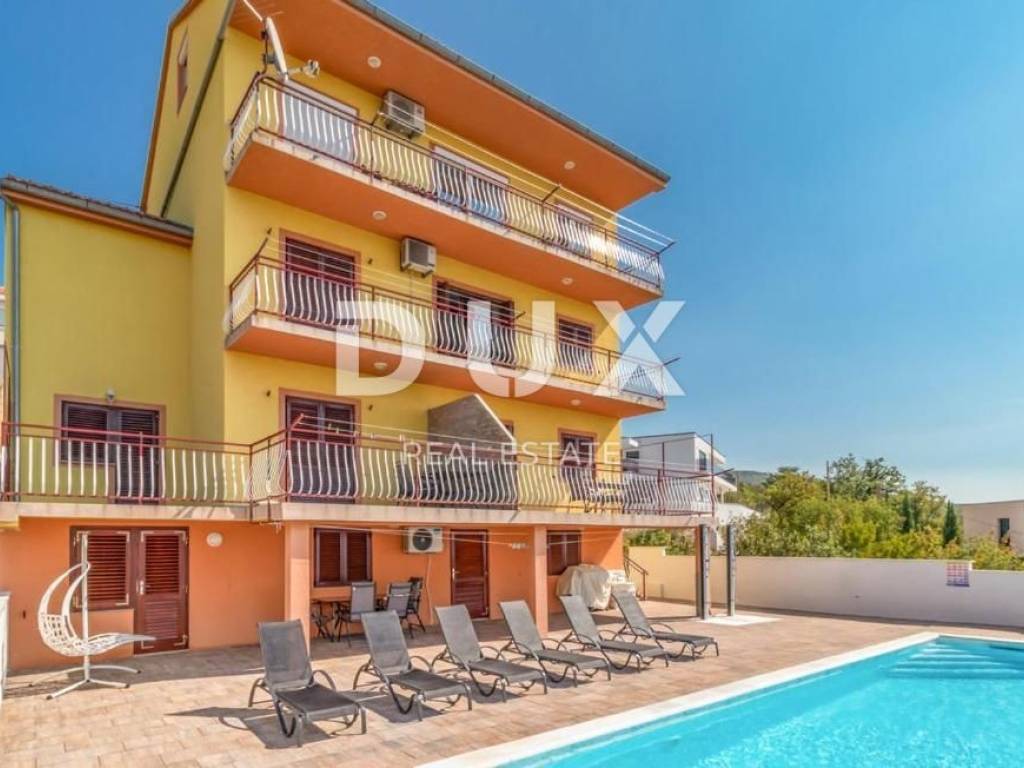 In the town of Crikvenica, in a great location, a house with six apartments is for sale. The house has a great sea view. All apartments have a fully equipped kitchen, dining area, air conditioning and bedrooms. The plot has its own parking lot, yard with pool and barbecue. This property is a great opportunity and already a well-established business.