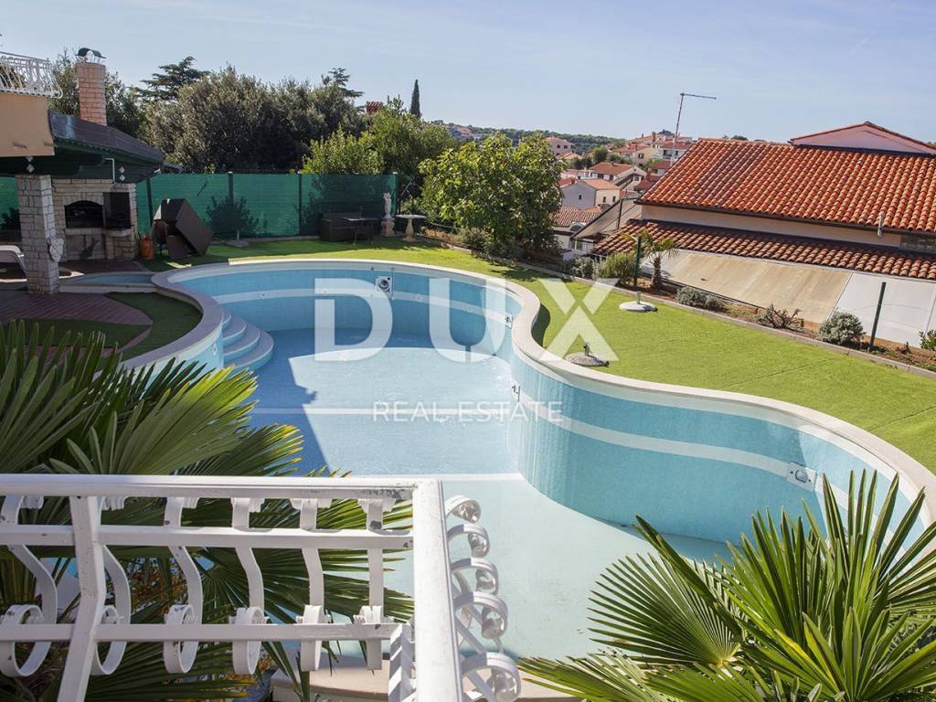 Kuća se sastoji od glavnog stana koji ima 200 m2, te 6 apartmana (dva dvosobna i četiri jednosobna), velike konobe 60 m2, natkrivene vanjske terase, prostranog dvorišta, bazena od 91 m2, tenis igrališta, podruma 63 m2, kotlovnice, više spremišta, dvije garaže te preko 10 parkirnih mjesta. Svi apartmani imaju predivne terase s pogledom na more!!