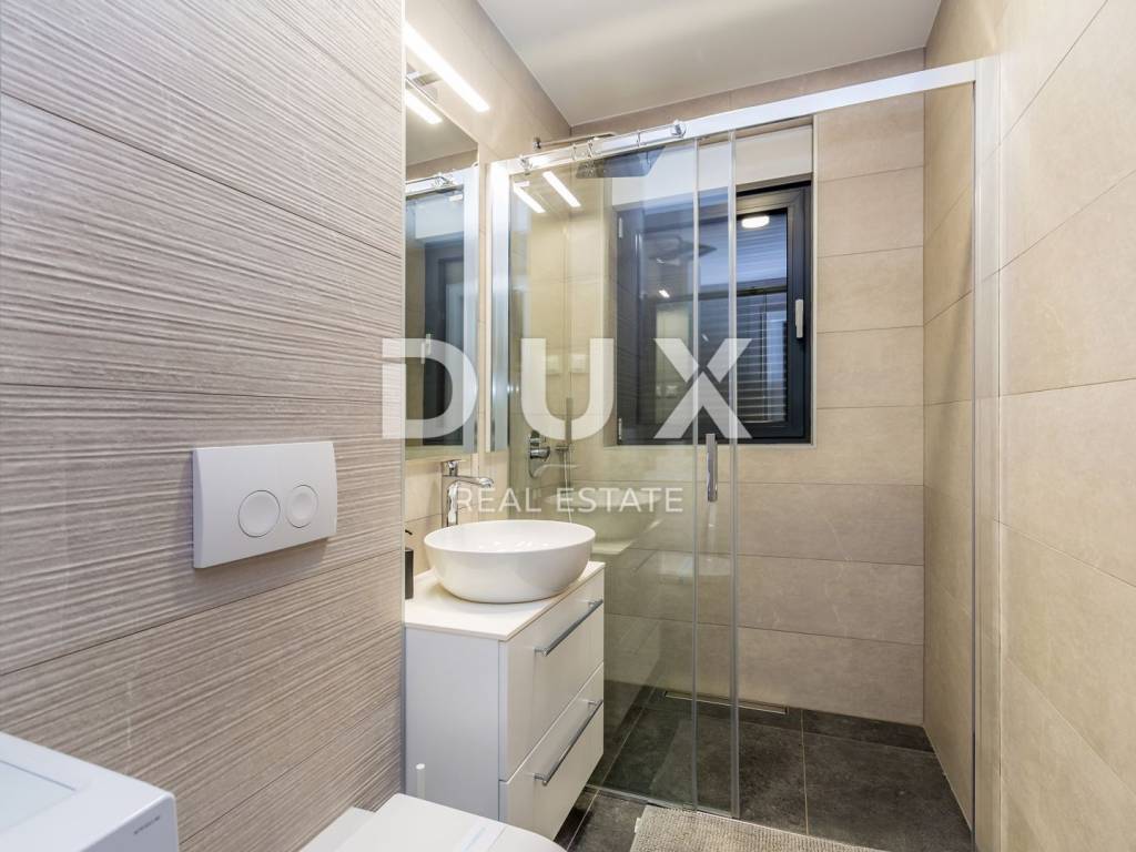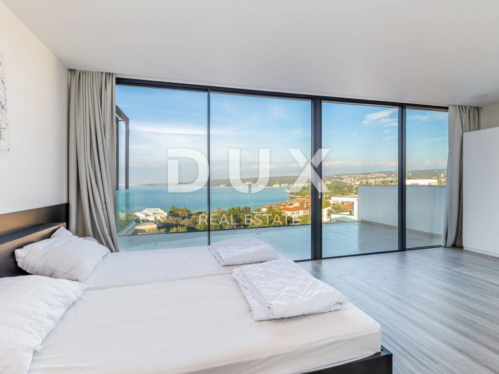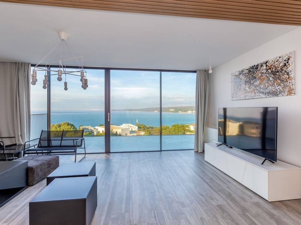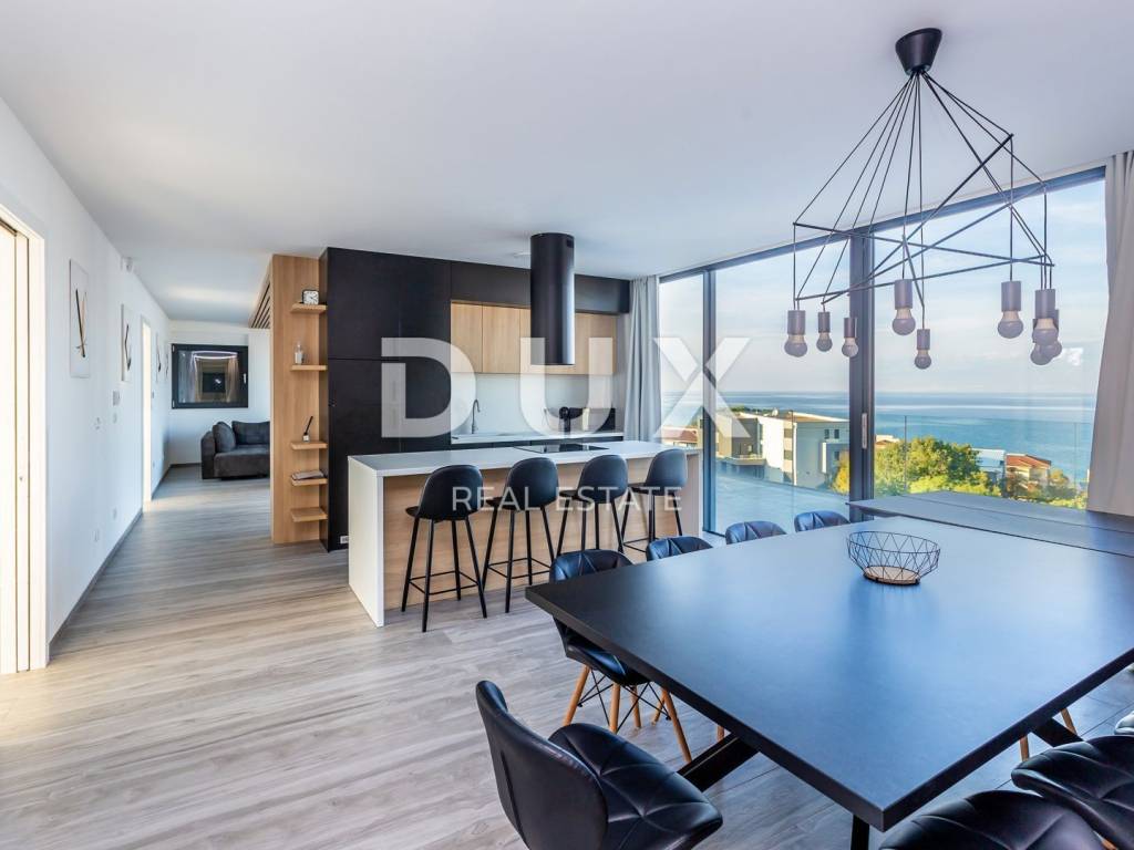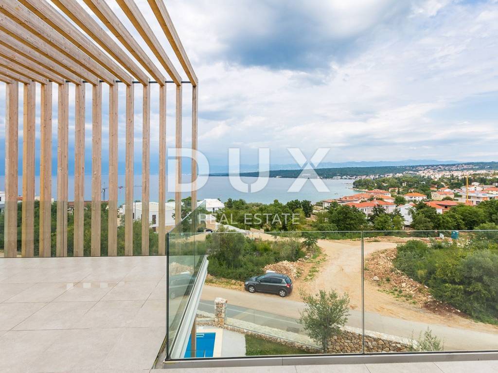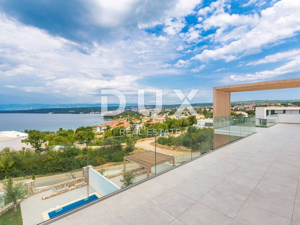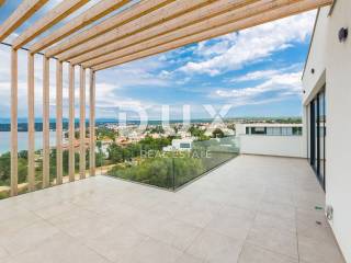 Luxury penthouse with one of the best panoramic views on the island of Krk. The penthouse consists of a separate part: living room, kitchen and dining room, a total of 4 bedrooms, 3 of which have their own bathroom, sauna and shower, staircase, elevator space, hallway, toilet and laundry, total area of 169 m2. The secondary part consists of three smaller balconies and one larger balcony, covered terrace, all in an area of 25 m2, which includes in the basement two storage rooms with a total area of 6.5 m2 and two parking spaces. It is located in an energy efficient building of five luxury apartments. The feature is quality construction and the use of quality elements. The building is designed to have large glass surfaces and lots of light in the interior. The system of sliding façade panel sunshades enables selective protection from the sun when it is needed, without closing the views of the sea. For heating and cooling, instead of the classic air conditioners, the building uses a professional fan-coil system and floor fan coil units driven by an air heat pump, a central vacuum cleaner with an engine room in the basement (vacuuming without noise and dust).
