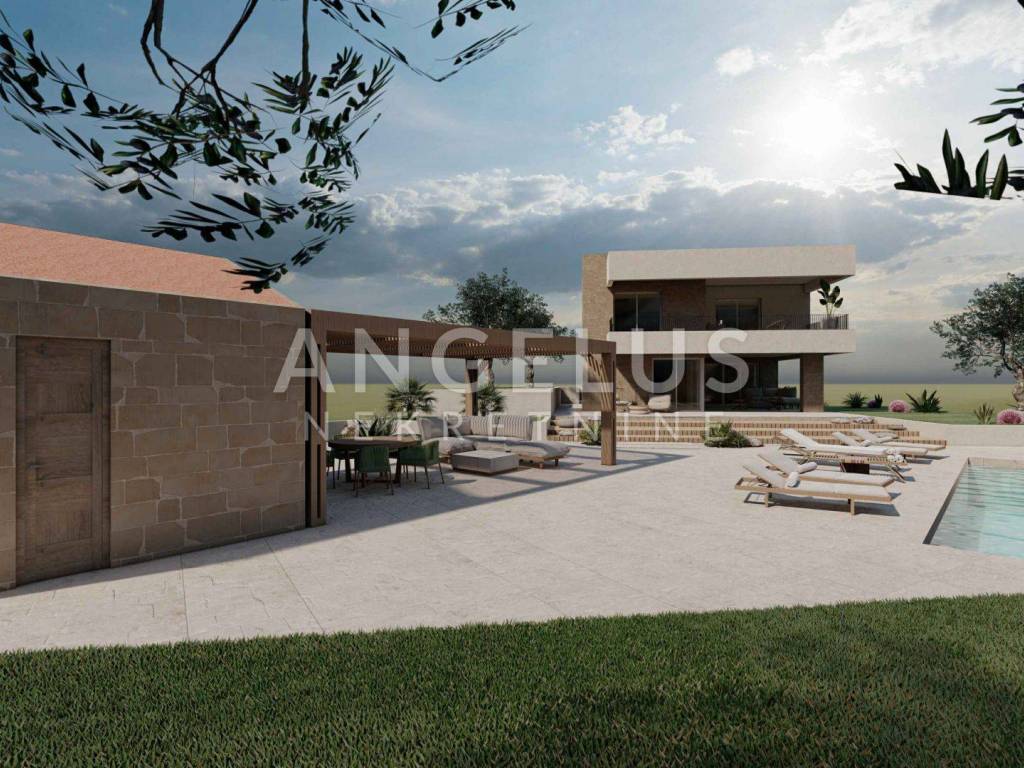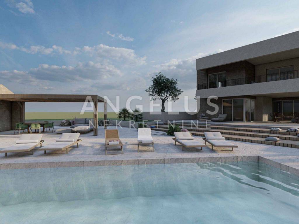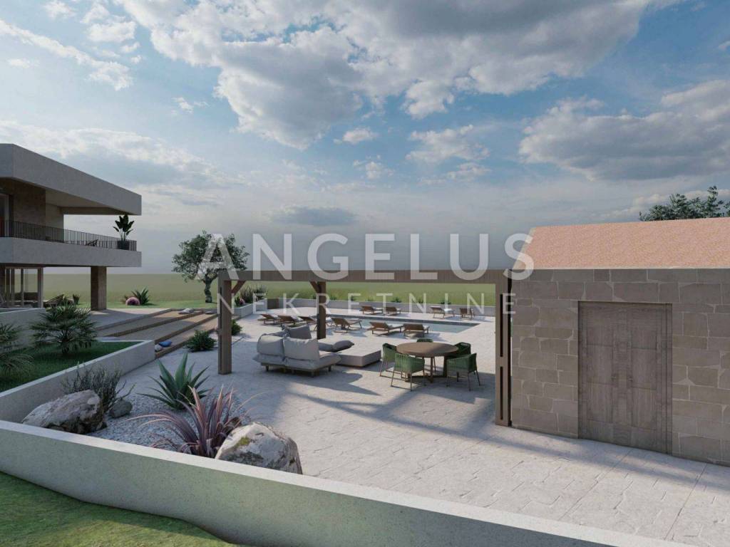 Real estate agency Angelus nekretnine d.o.o. offers you for sale a unfinished villa with a swimming pool with a panoramic view in the town of Stomorska on the island of Šolta