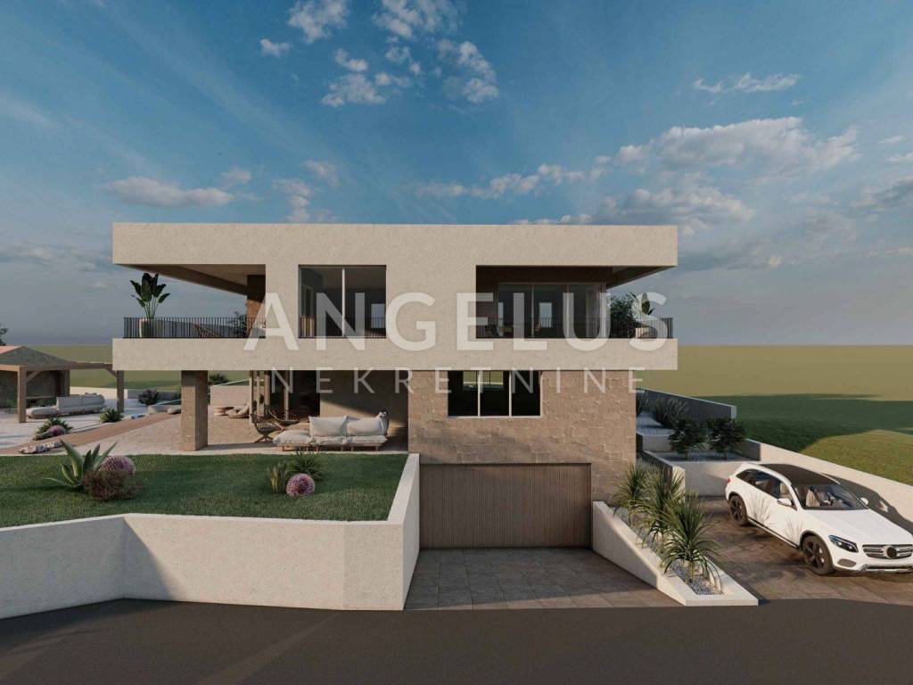 The villa is located on a large plot of 1100 m2, and extends over a basement, ground floor and first floor. The total gross area of the enclosed space is 270 m2, the villa has a swimming pool, a large sundeck around the pool, a summer kitchen and a garage.