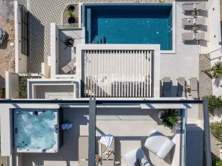 This luxury villa offers 5 spacious bedrooms, each with its own bathroom. The open-plan living room is connected to a modern kitchen and dining area that leads to a beautiful terrace. The terrace is equipped with an infinity pool, a bioclimatic pergola, a sunbathing area, and a landscaped garden with Mediterranean plants typical of the region, providing an ideal place for relaxation and enjoyment.