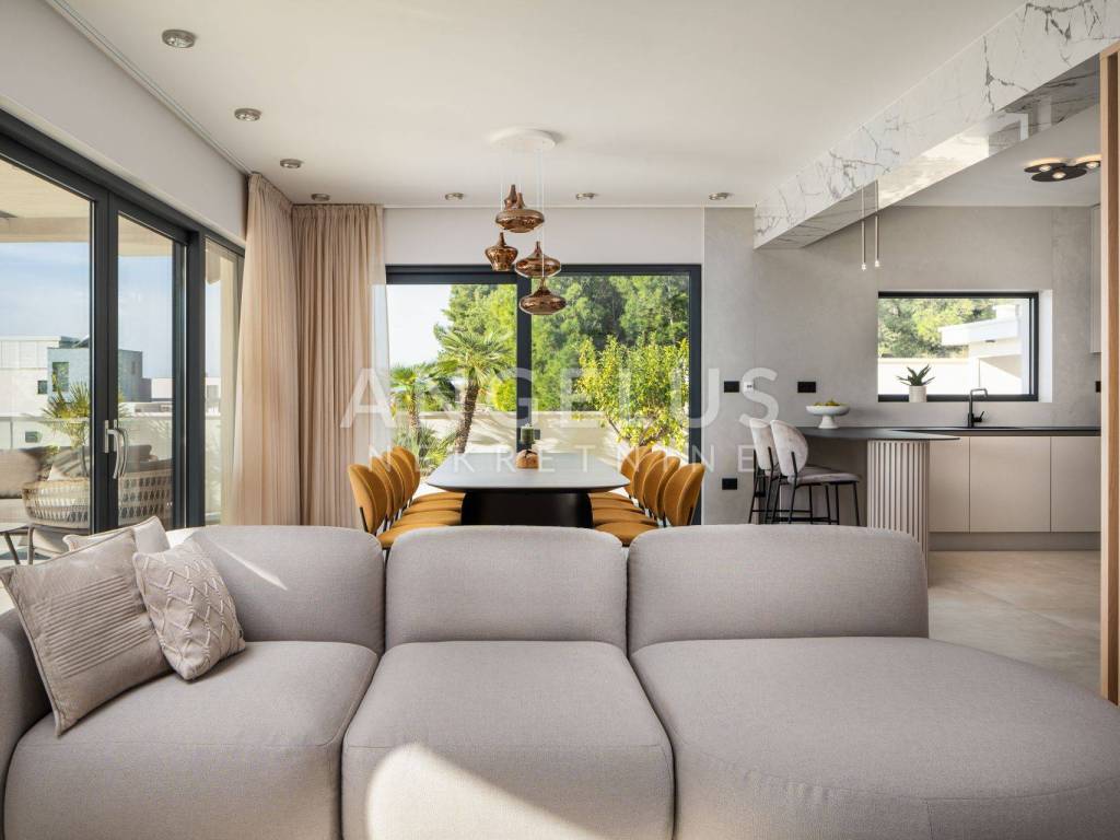 Donja Podstrana is a tourist village located south of the city of Split, the second-largest city in the Republic of Croatia and the largest city on the Adriatic coast. The village is known for its beaches, clear sea, and mild Mediterranean climate, offering beautiful views of the sea and surrounding islands, making it an attractive destination for living and vacationing for decades. It has all the facilities necessary for both vacation and living, such as shops, restaurants, pharmacies, a school, and amenities for children. It is 30 km from Split Airport, 15 km from the ferry port, and 15 km from the town of Omiš.