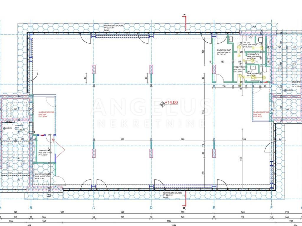 Prostor se sastoji od predprostora, open space prostora, čajne kuhinje, M/Ž sanitarnog čvora, server sobe, spremišta.