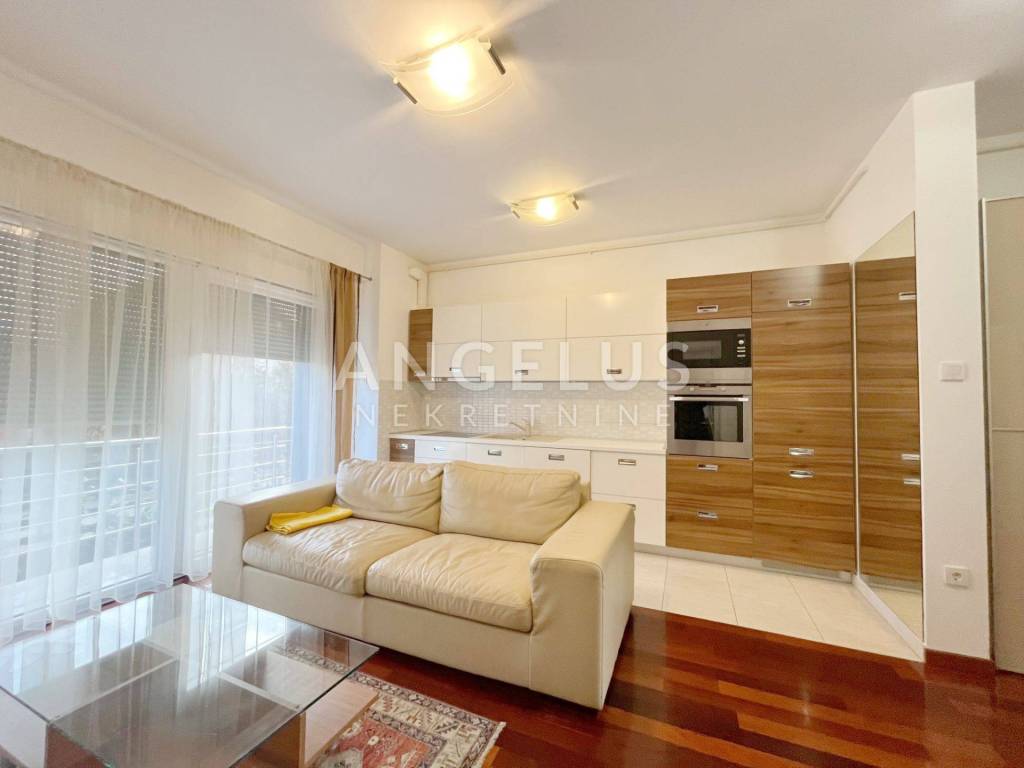 It is situated on the 1st floor of the newer building and consists of: bedroom, bathroom, kitchen, living & dining area, terrace. It is completely furnished and includes parking place in the yard. Gym, sauna and Jacuzzi for 6 people is possible to use in the building 100 m from the apartment.