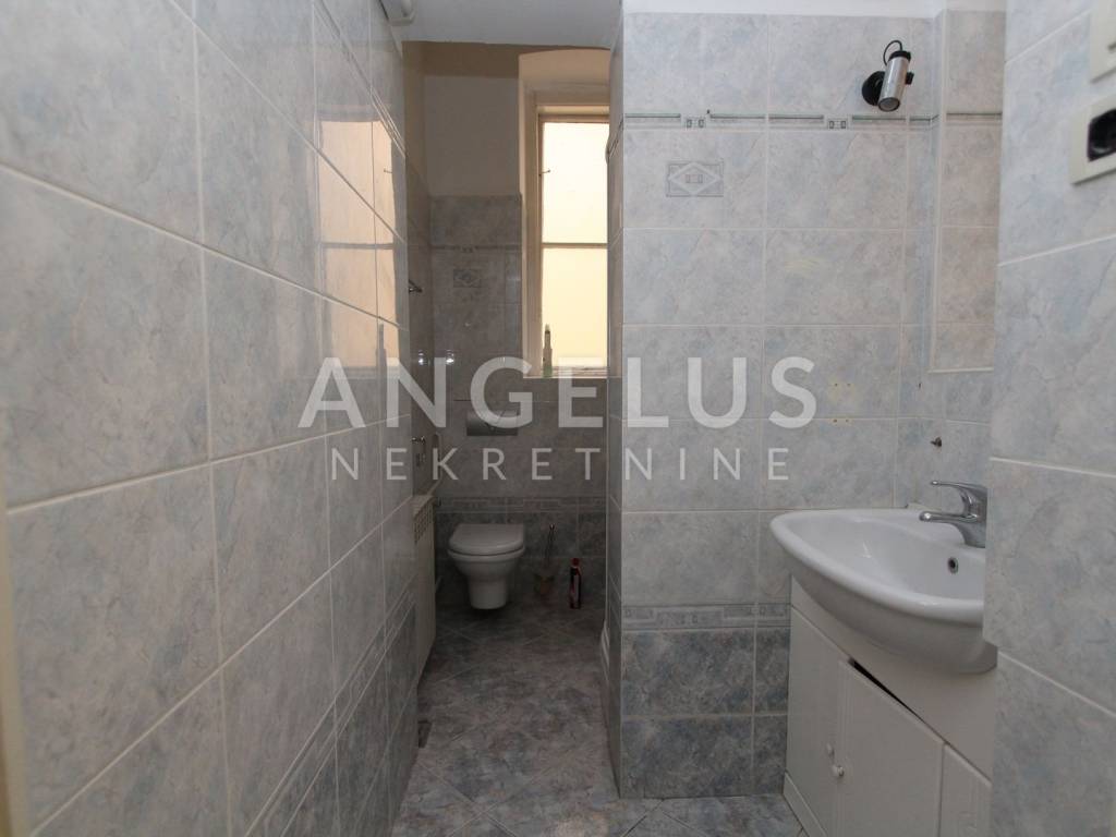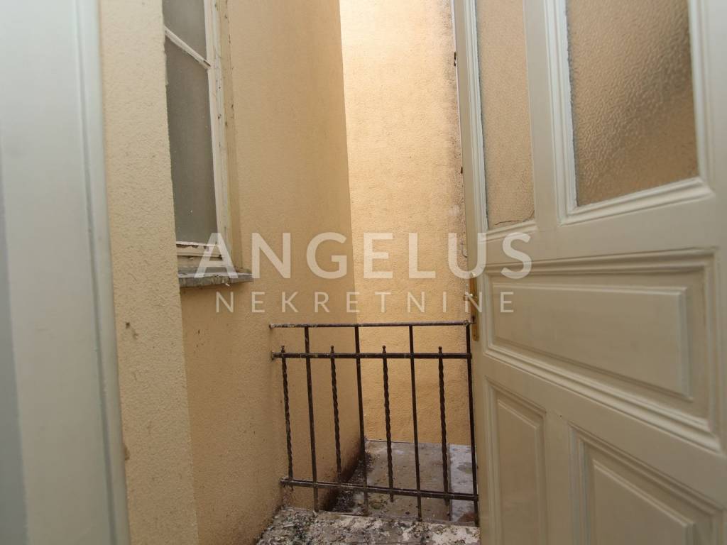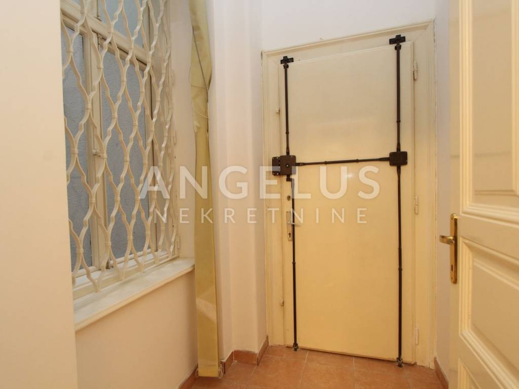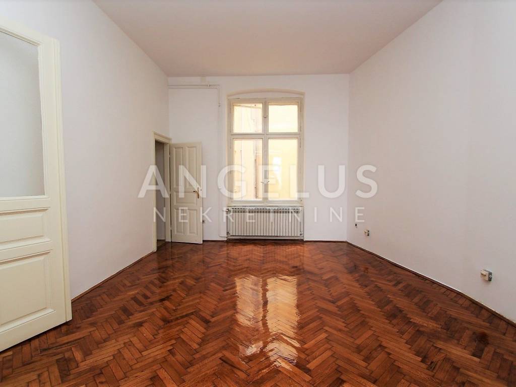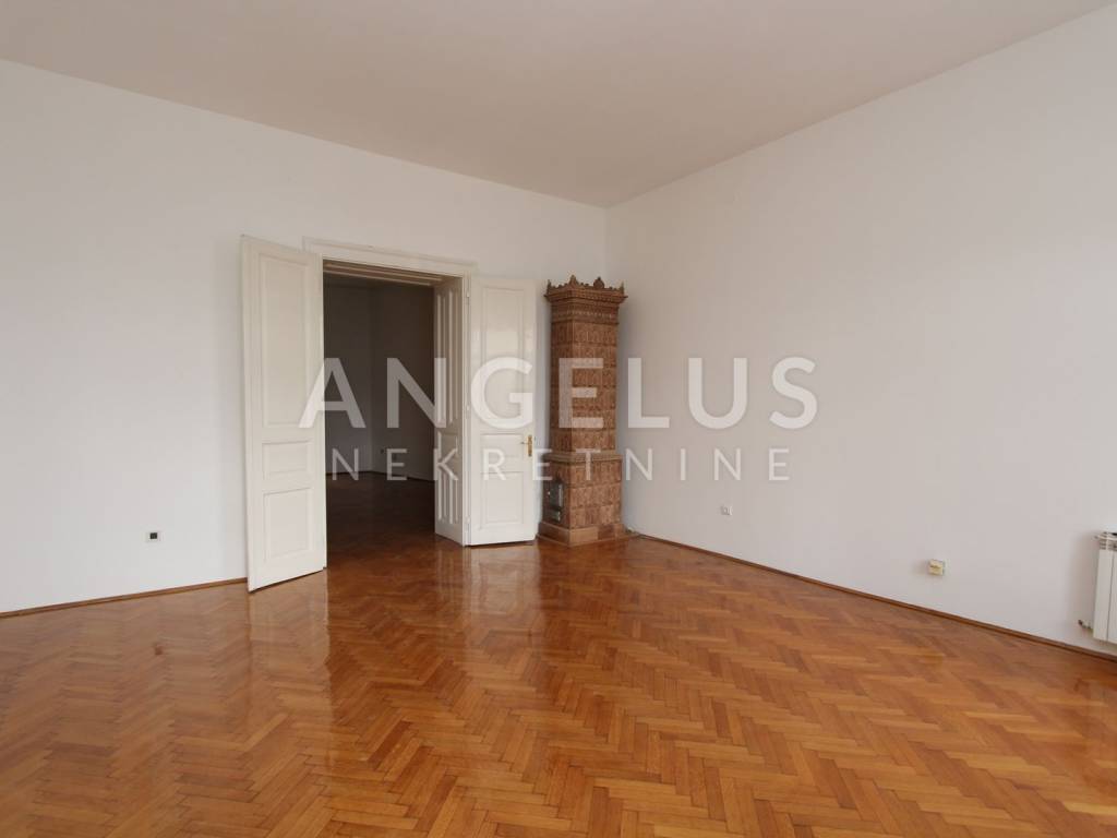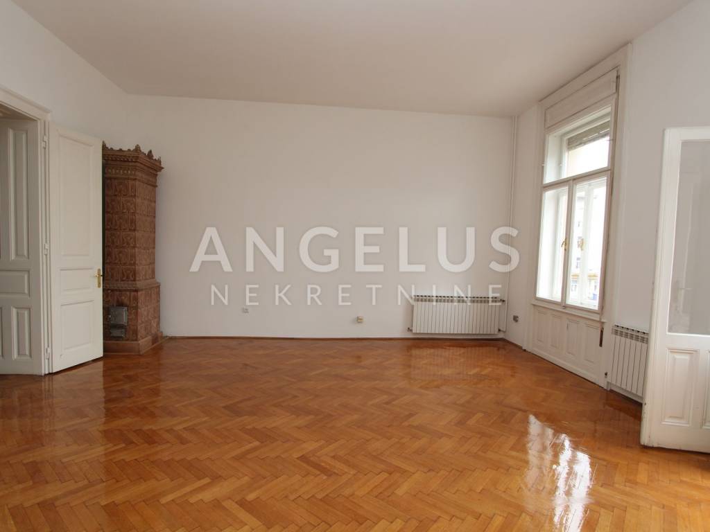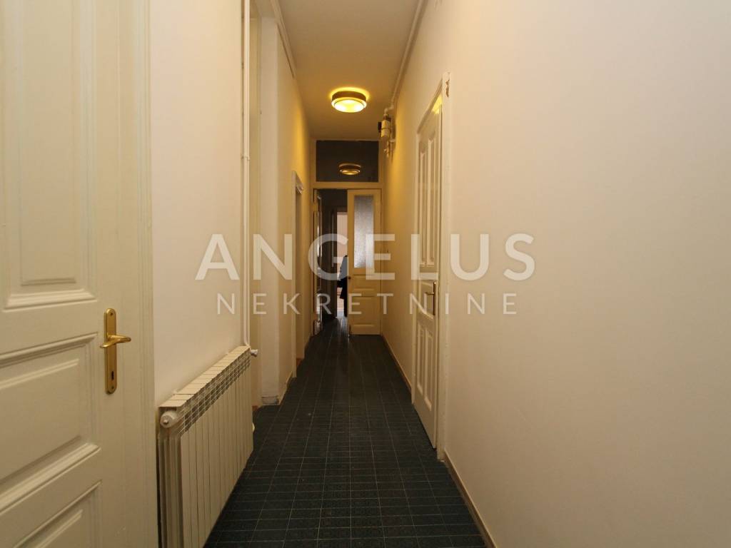OPIS: Stan ima ulaz iz dvije zgrade te se sastoji od ulaznog hodnika, dvije velike salonske prostorije koje gledaju na trg, jedna salonska prostorija orijentirana prema dvorištu, kuhinje, kupaone i još jedne prostorije. Zgrada ima lift.
