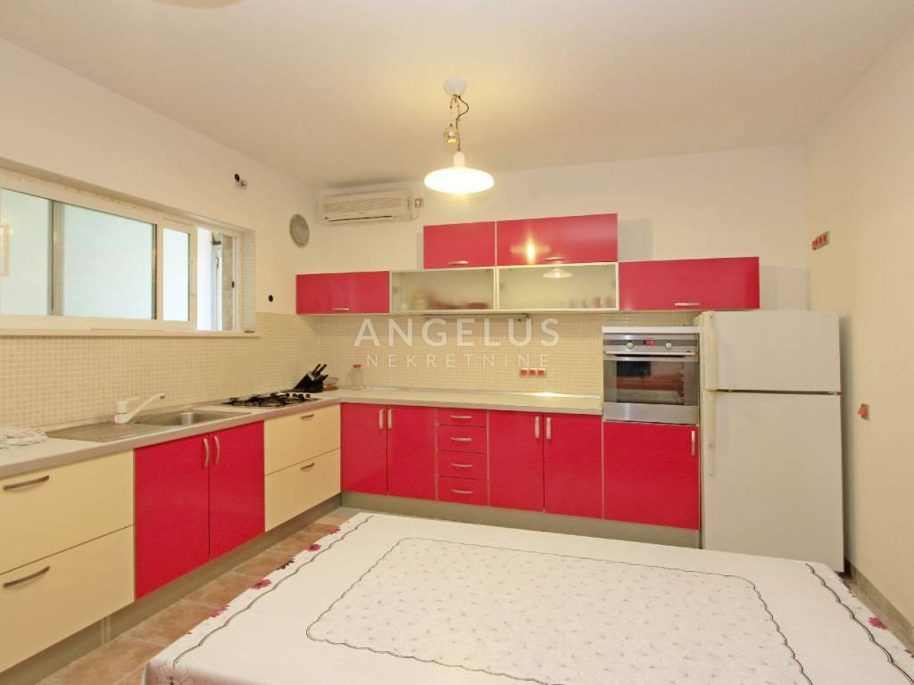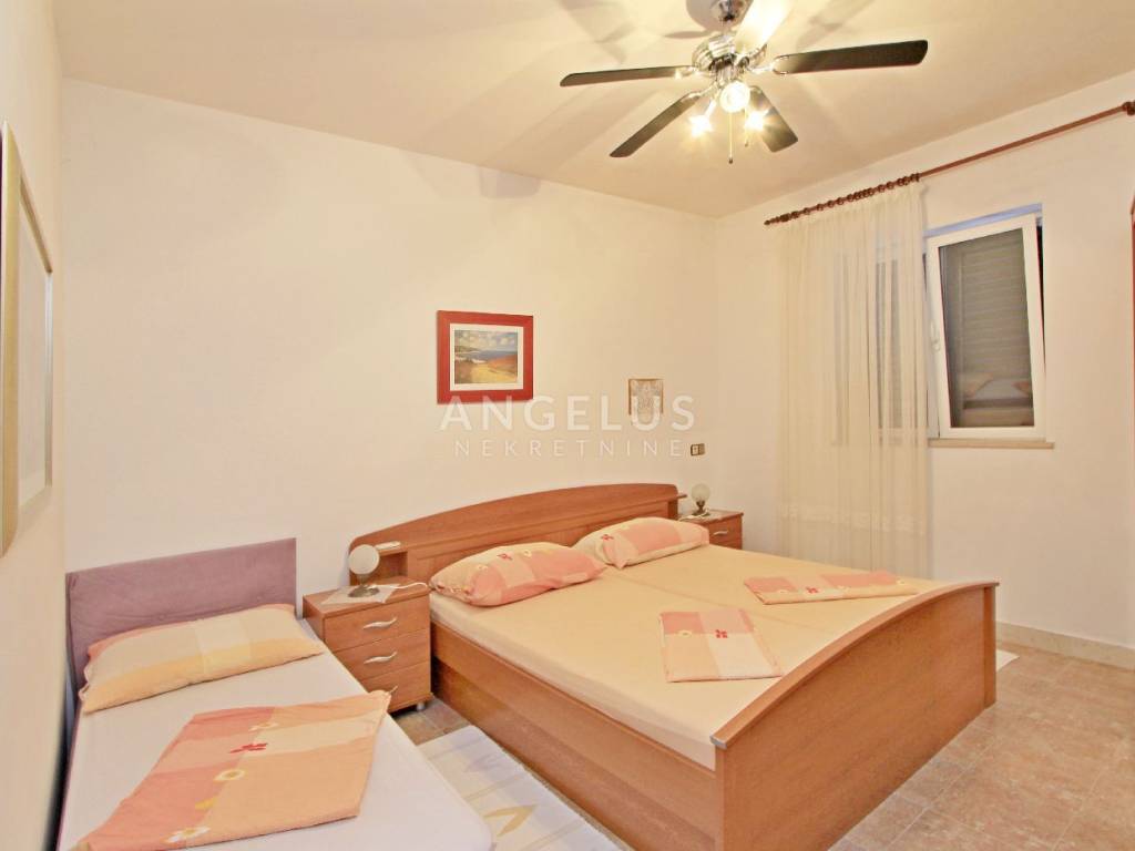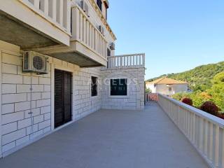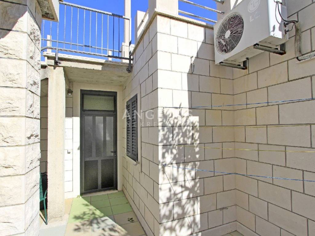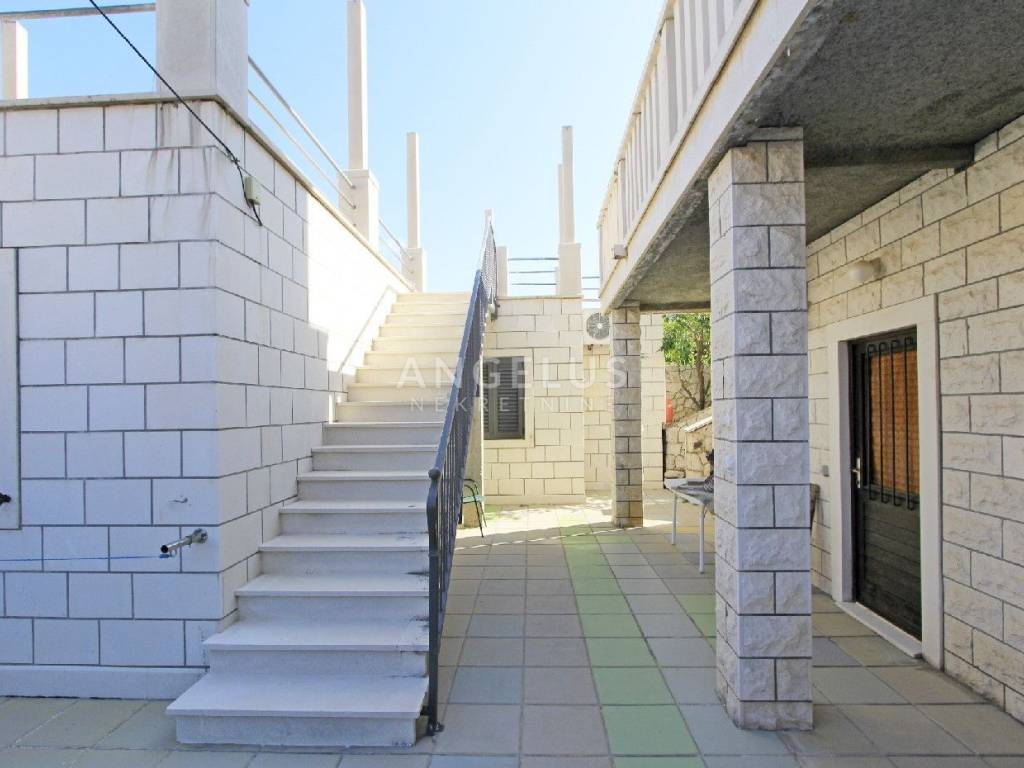 An internal staircase leads from the ground floor to the first floor of 115 m2, which consists of seven rooms, each with its own bathroom. The rooms have been decorated and in the function of tourist rental for a long time so that the future buyer can immediately continue the business without much investment. Two rooms on this floor have their own balconies, and two rooms have a spacious terrace. An internal staircase leads to the second floor of 118 m2, which has four bedrooms with bathrooms, one additional room, kitchen with dining area, living room, and pantry.