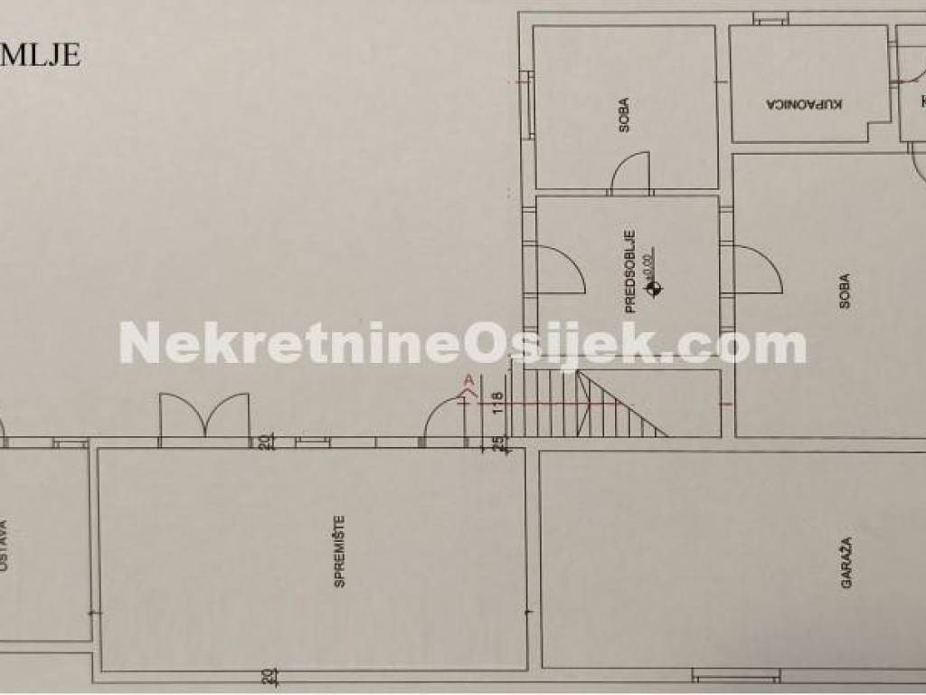 PRIZEMLJE: 3 sobe, kupaonica, kuhinja, predsoblje, garaža,