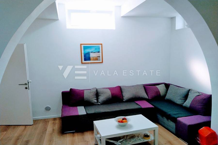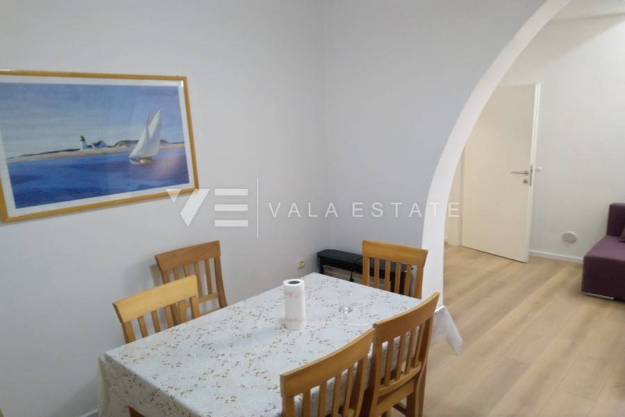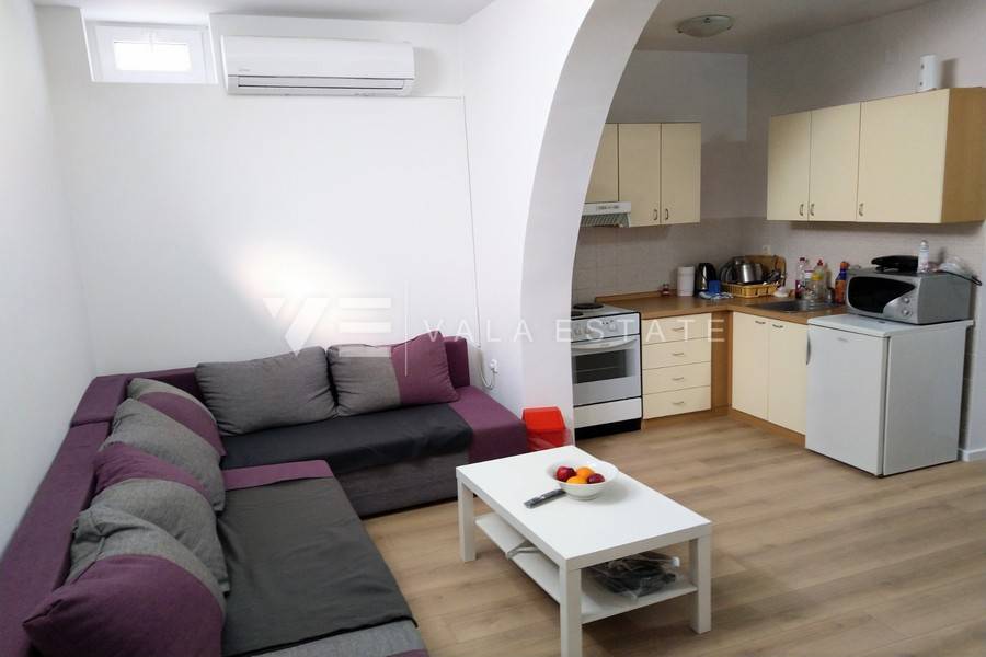 Real estate island Krk, Malinska - for sale is an apartment in a good location with a total living area of 39 m2 located in the basement of an apartment house. It consists of an entrance hall, bedroom, bathroom and a space that combines a kitchen with a dining area and a living room. It also has one parking space in the shared courtyard of the house. The apartment has PVC exterior carpentry, is air-conditioned and is sold fully furnished and ready to move in. It is located in a prime location only 500 m from beautiful beaches and near the center with all necessary amenities.