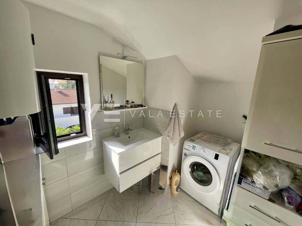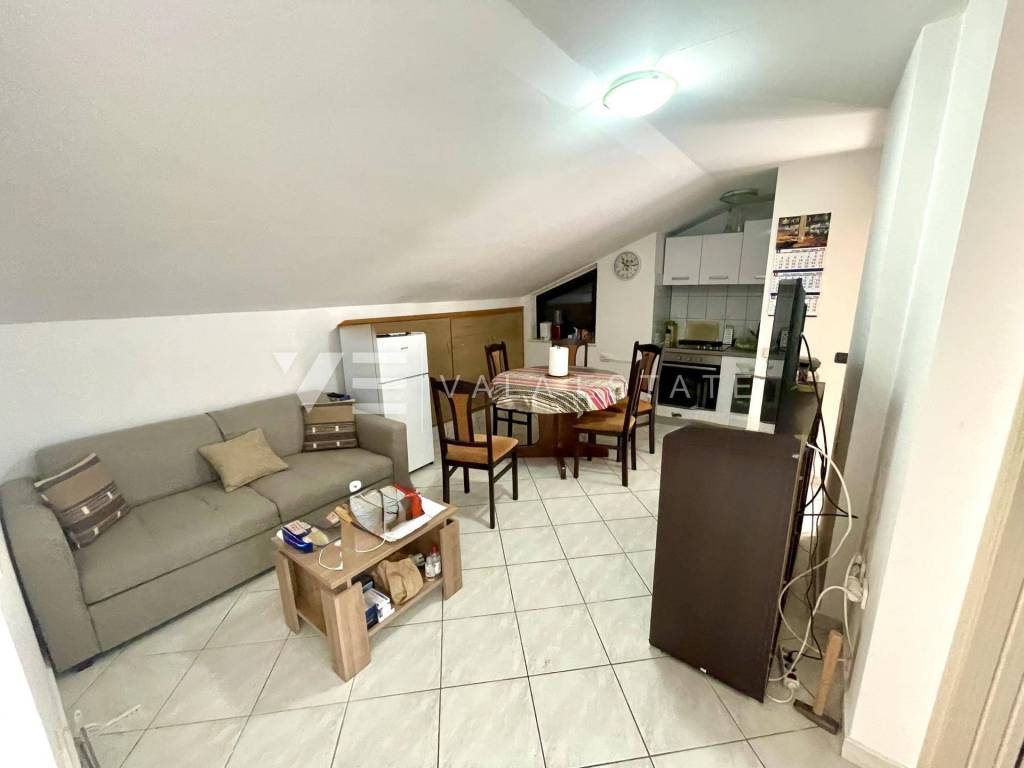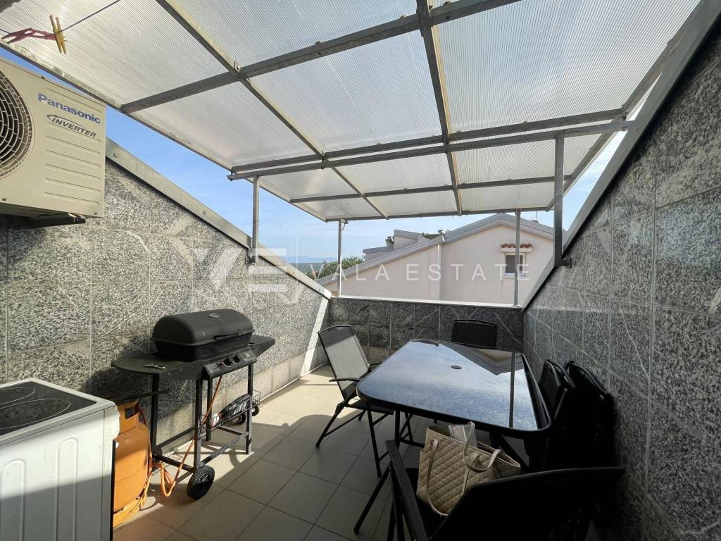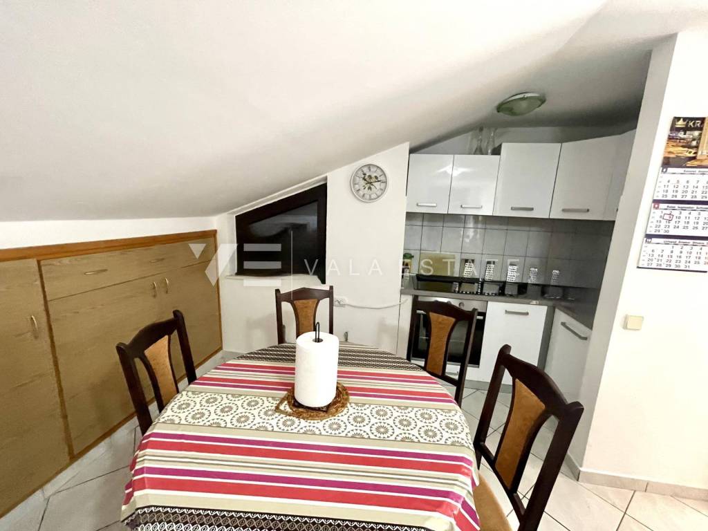 Real estate island Krk, Malinska - for sale is a one-bedroom apartment in a quiet location near beautiful beaches. The apartment with a total living area of 48 m2 is located in the attic of a multi-family house and consists of an entrance hall, kitchen with dining area, living room with access to a covered terrace, bedroom, bathroom and storage room. The apartment is furnished, air-conditioned, has PVC exterior carpentry and is immediately ready to move in. It is a great opportunity for your own use or for tourist rental.