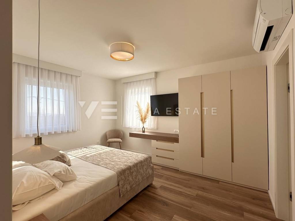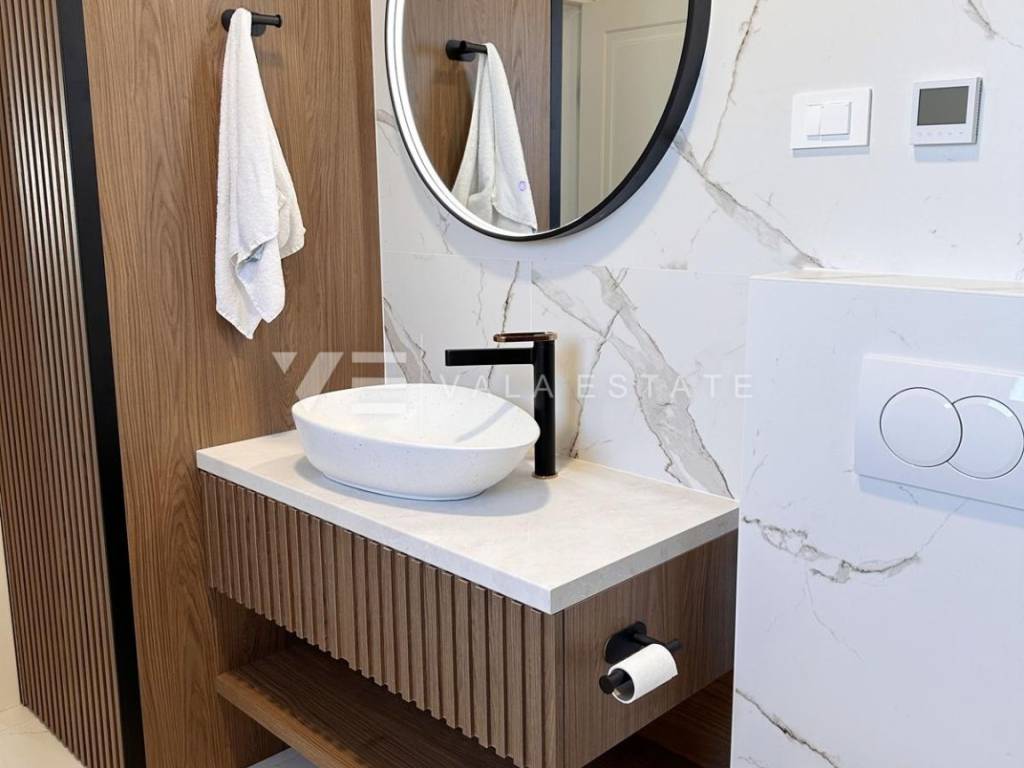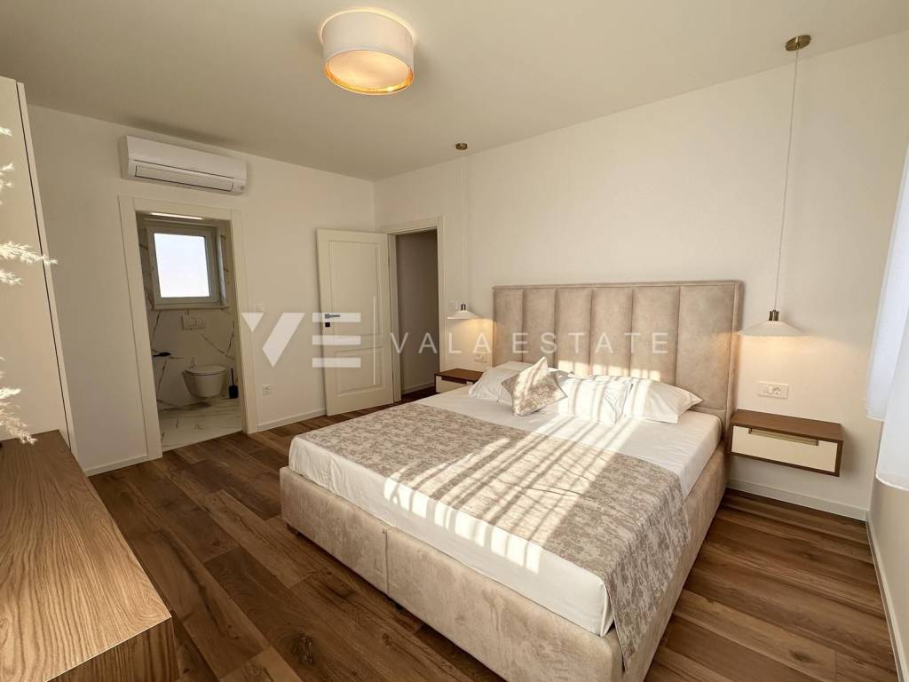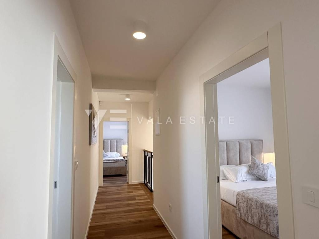 Real estate island Krk, Dobrinj area - for sale is a beautiful and stylishly decorated villa in a quiet location 5000 m from the center and the sea. The villa was built in 2024 and is fully equipped with quality designer furniture, air conditioning, underfloor heating, high-quality PVC joinery, top-quality ceramics and sanitary ware. It spreads over two floors and offers a total living area of 178 m2. The ground floor includes an entrance area, bathroom, kitchen with dining area and spacious living room with access to a covered terrace. On the first floor there are three more bedrooms, each with its own bathroom. On the beautifully landscaped and fenced garden that provides privacy, there is a swimming pool, sundeck, covered terrace and three parking spaces. This excellent property is ideal for all lovers of a peaceful vacation, but also a good opportunity for investment for tourist rental purposes. Vala Estate Malinska agency will enable you to secure and transparent transfer of ownership and all necessary documentation.
