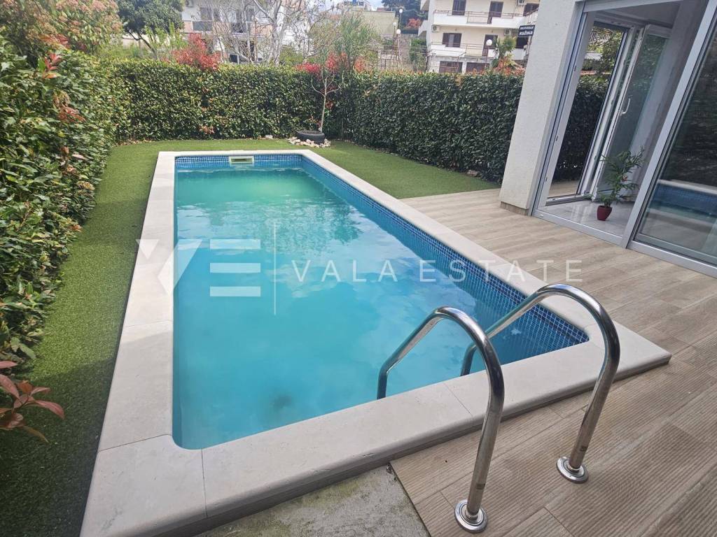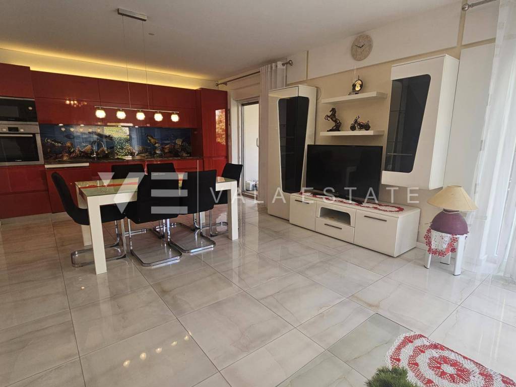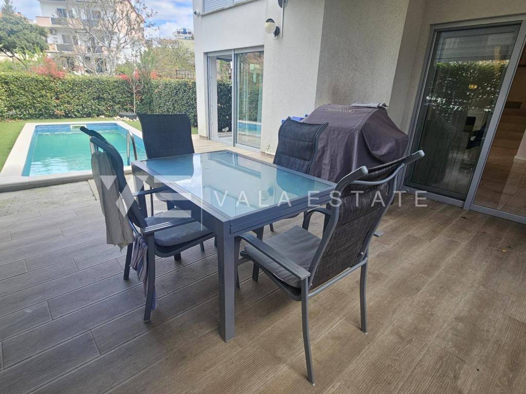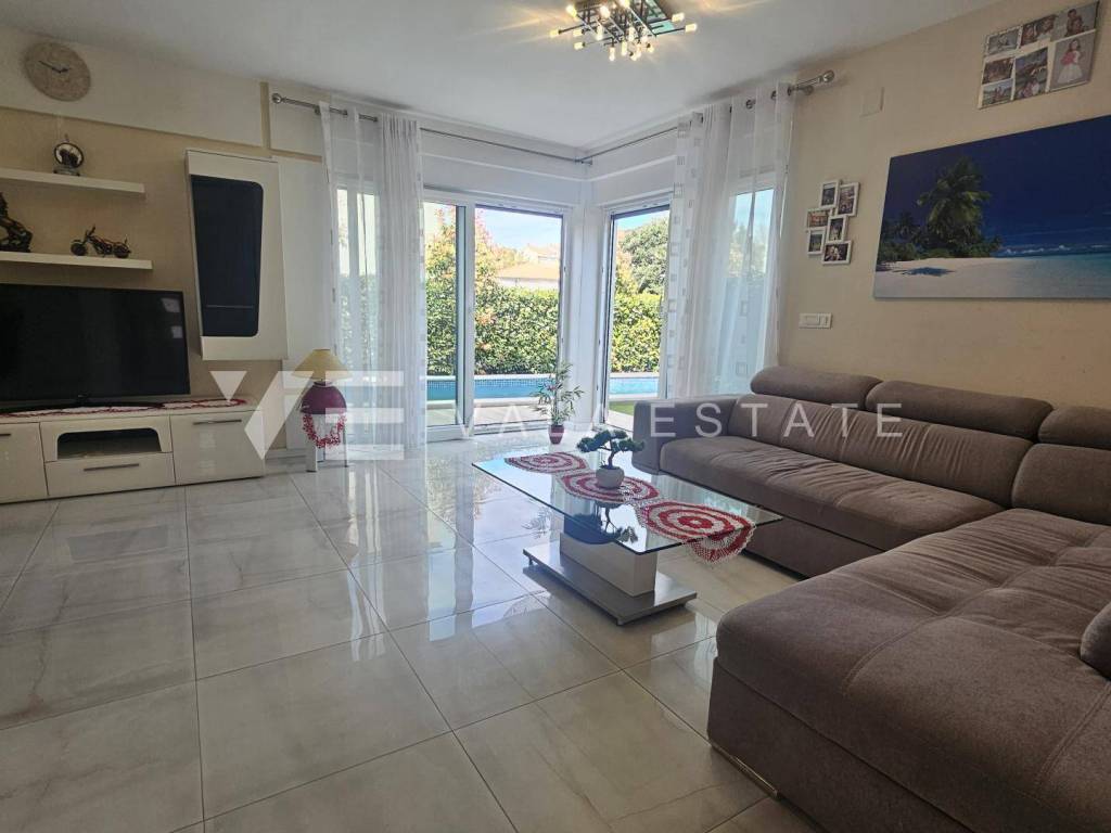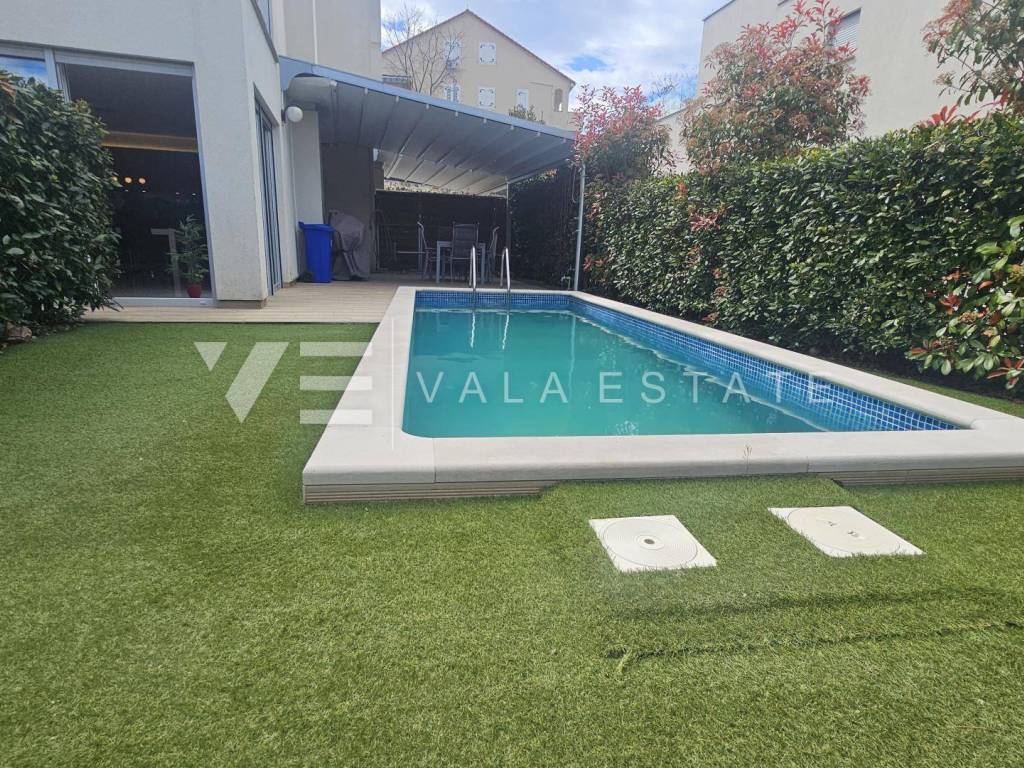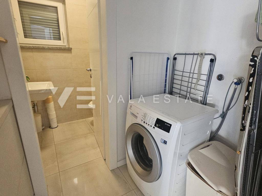 Real estate island Krk, Malinska - for sale is a top-quality three-storey apartment in a newer apartment building with only two residential units. It consists of a ground floor with an entrance hall, storage room, toilet with laundry room and a spacious living room with kitchen and dining area, the first floor with three bedrooms and two bathrooms, one of which has its own bathroom, and a roof area with a partial view of the sea, which is arranged as a covered summer kitchen and sundeck. The apartment on the ground floor is surrounded by a beautiful landscaped garden with its own swimming pool and an area for socializing and spending time outdoors. It is being sold fully furnished and is ready to move in immediately. Quality construction and equipment, underfloor heating, multi-split air conditioning and solar hot water heaters are just some of the features of this apartment. This property is located in a very attractive location near the sea and the center with all the necessary amenities. It is a good opportunity for an investment for tourist rental purposes or for personal residence.