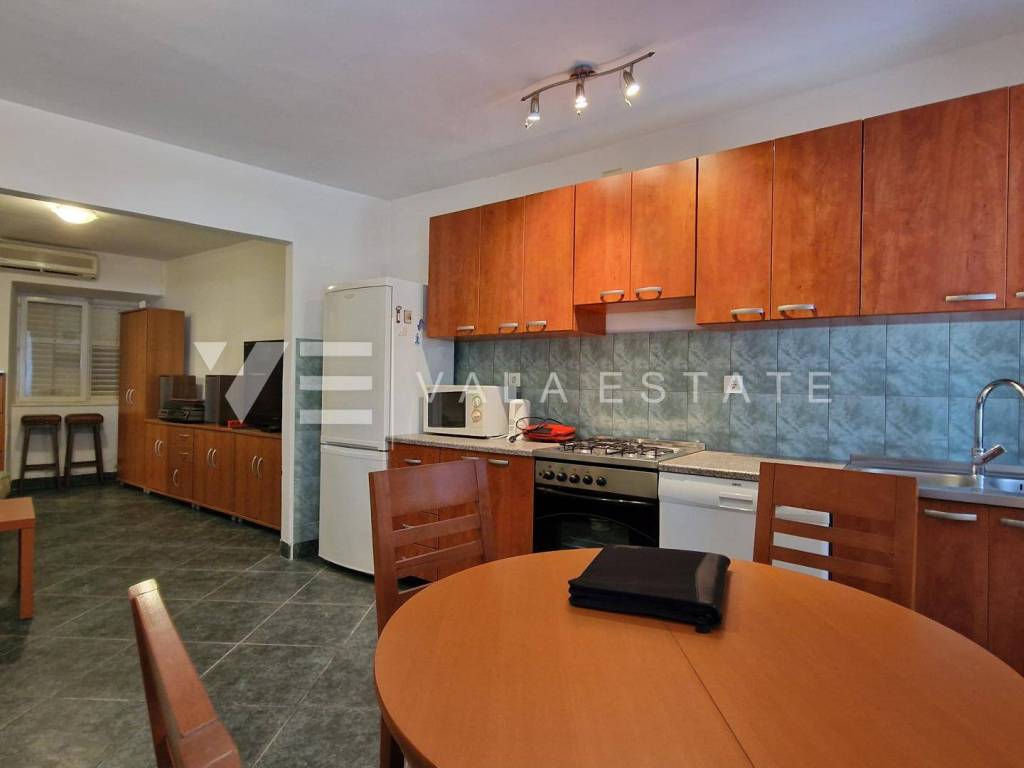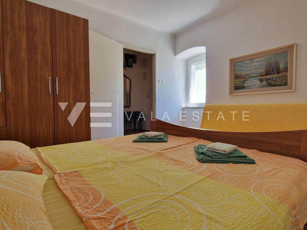Real estate on the island of Krk, Punat - in the old town center, a semi-detached stone house with a total living area of 180 m2 distributed over a total of three floors is for sale. On the ground floor there is an entrance area, bathroom, kitchen with dining room, living room and two bedrooms. On the first floor there are two bedrooms, a bathroom, a kitchen and a large terrace, and on the second floor there is a loft that needs to be renovated. The house is furnished and equipped, has PVC, ALU and wooden joinery, is air-conditioned and ready to move into. The location of the house is in the immediate vicinity of all facilities and only 30 m from the sea and not far from the first beaches. This property is a great opportunity for a personal stay, but also as an investment for the purpose of tourist rental.