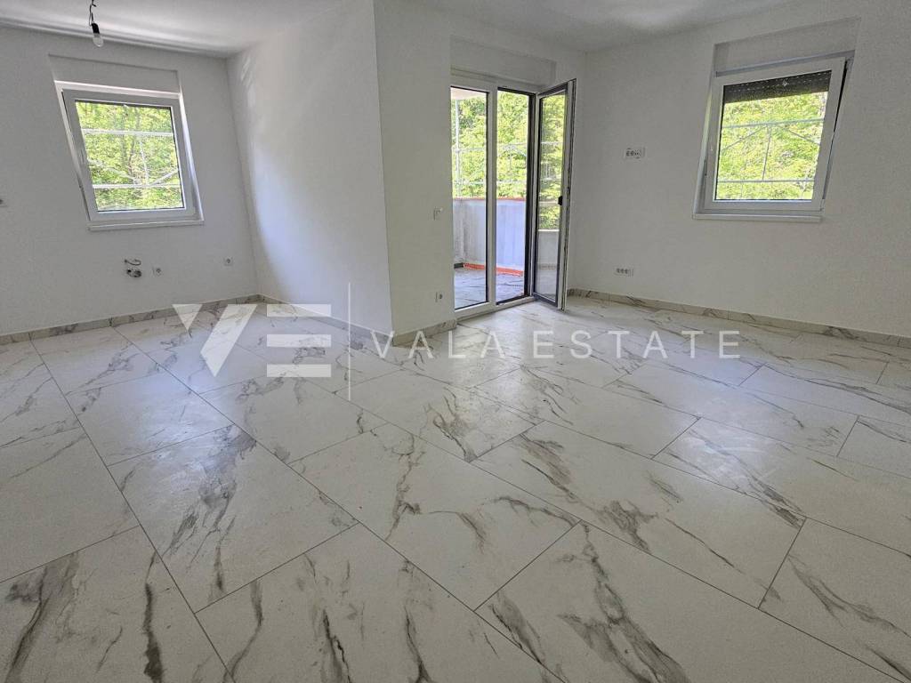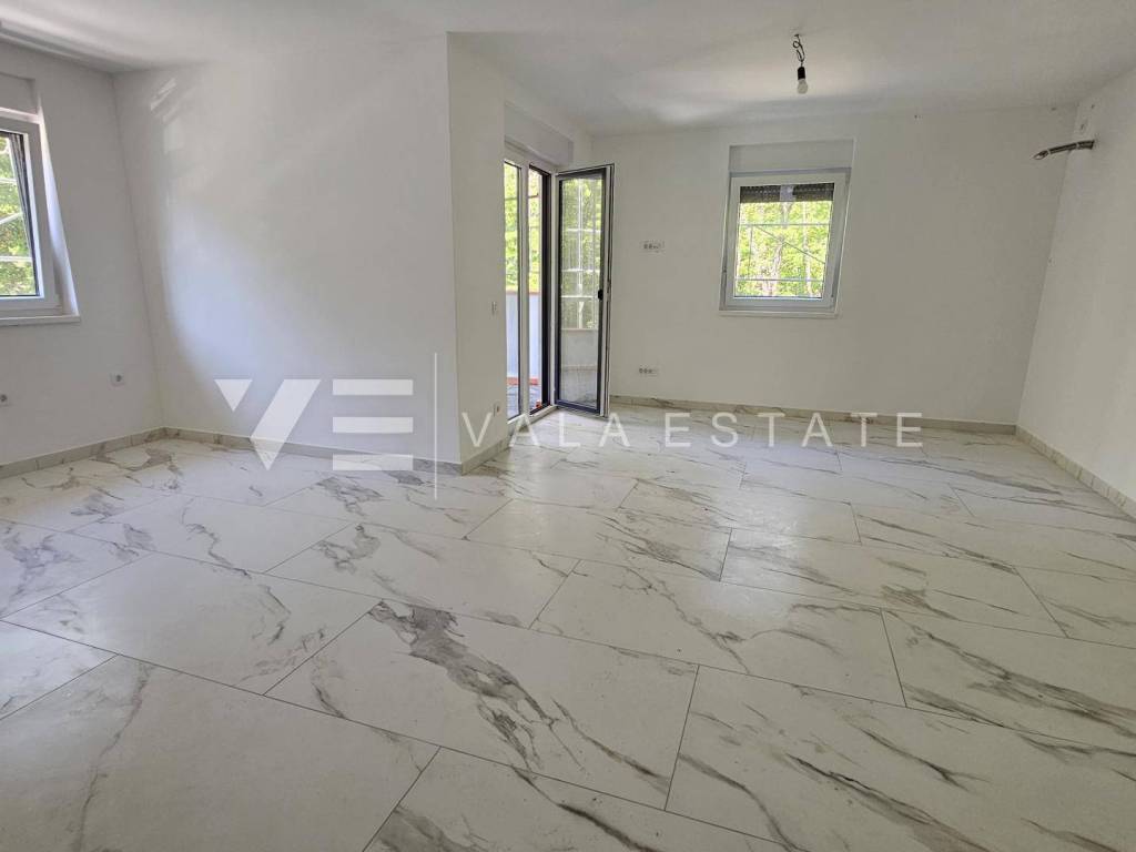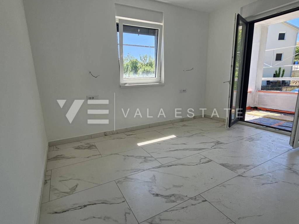 Real estate Island of Krk, Dobrinj area - for sale is an apartment on the first floor of a new building with a total living area of 71 m2 distributed in two bedrooms, bathroom, kitchen with dining room and living room and two covered terraces. He has one parking space in the common yard of the house. Quality materials and equipment are used for construction, including ceramic floor coverings, quality sanitary facilities, room air conditioning, built-in high-quality PVC carpentry with blinds and security doors. It is located in a quiet location 1500 m from the sea and beautiful beaches. The property is currently under construction, and the planned completion is expected at the end of 2025. VAT is included in the price and the buyer does not pay real estate sales tax.