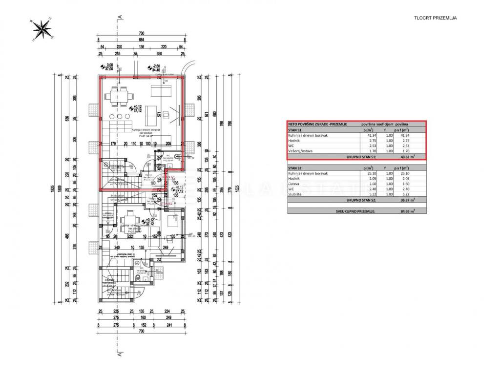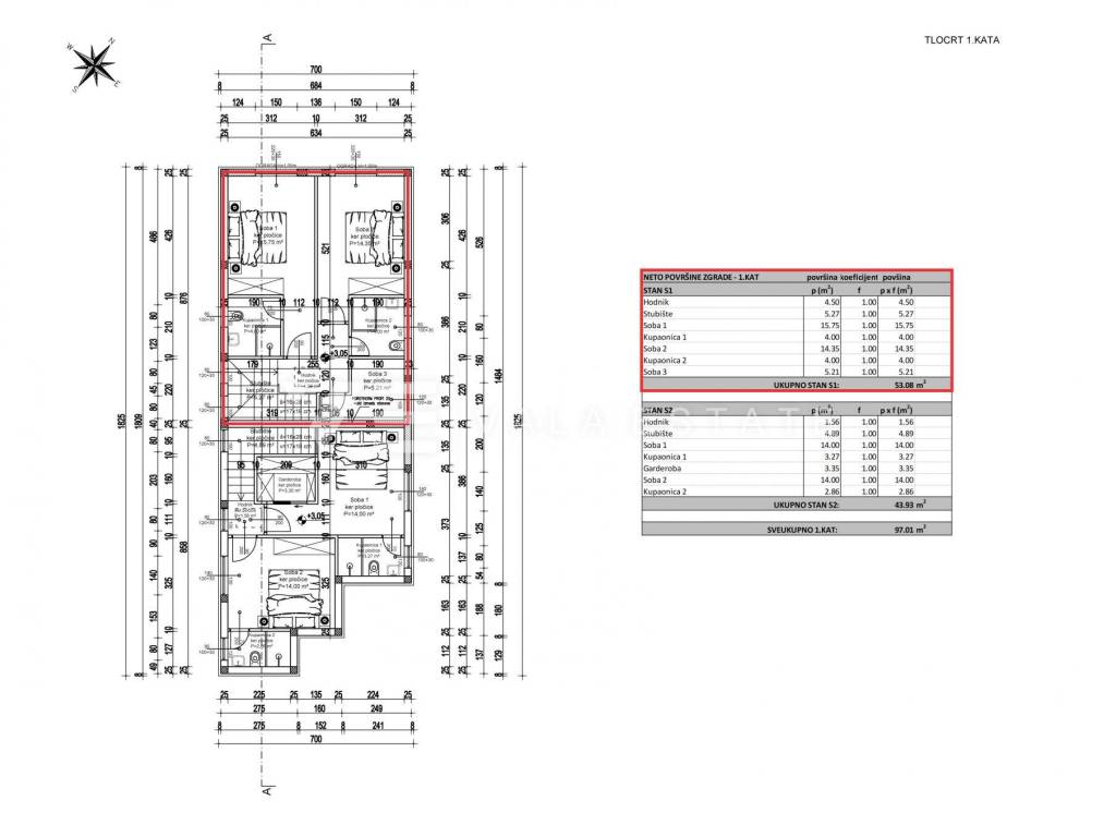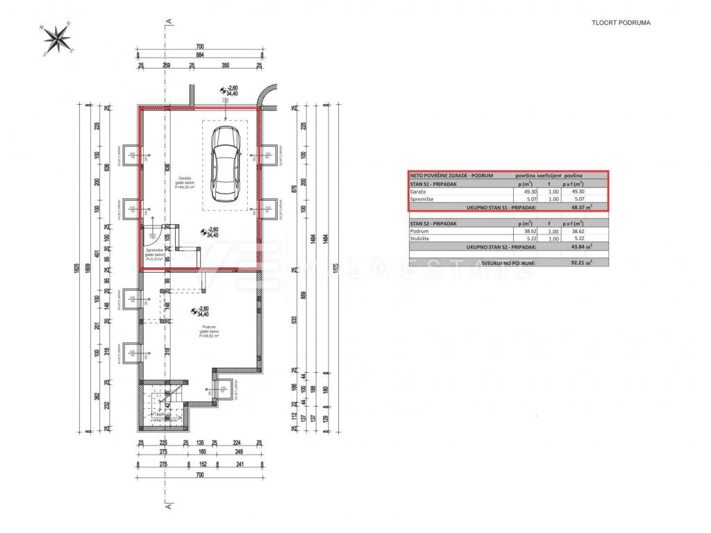 Real estate island Krk, Malinska - for sale is a new modern semi-detached house in a location only 650 m from the sea and the center with all amenities. The house occupies 149.77 m2 of living space distributed over basement, ground floor and first floor. In the basement there is a storage room and a room of 48.37 m2, part of which is arranged as a garage with access to the park area in front of the house, and the remaining part can be arranged as desired. The ground floor includes a hallway, toilet, pantry/laundry room, kitchen with dining room and living room with access to its own garden. Upstairs there are two bathrooms and three bedrooms, two of which have a view of the sea. In addition to the parking space in the garage, it also has one parking space in the common yard of the house. Quality materials and equipment are used for the construction, which include floor coverings made of high-quality ceramics, quality sanitary facilities, multisplit air conditioning in all rooms, underfloor heating, built-in high-quality PVC joinery and burglar-proof doors. The property is currently in the initial phase of construction, and the planned completion is expected by the summer of 2025.