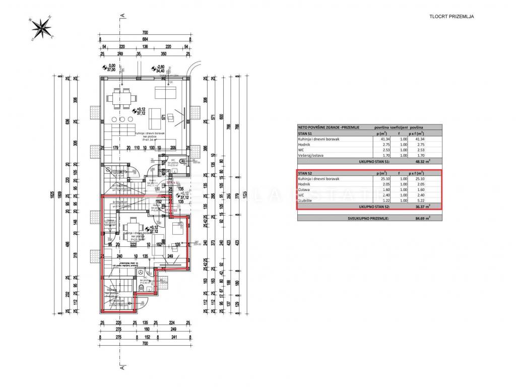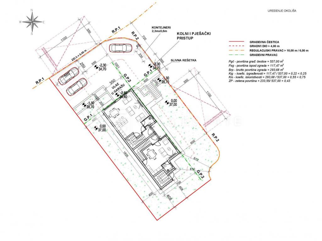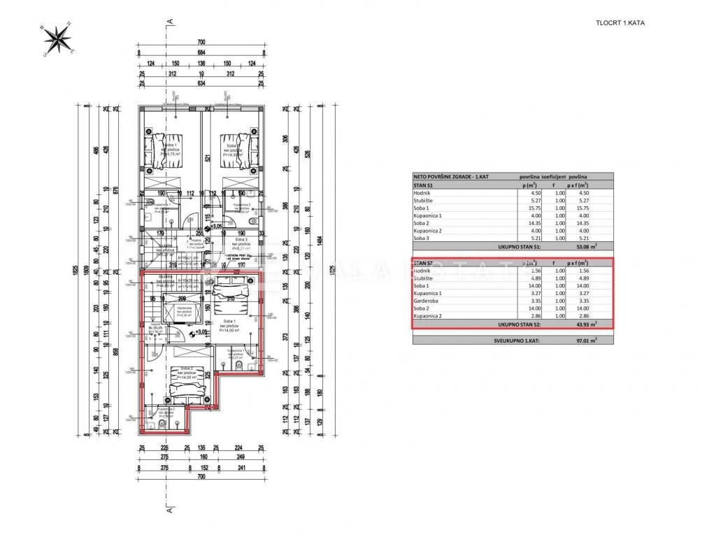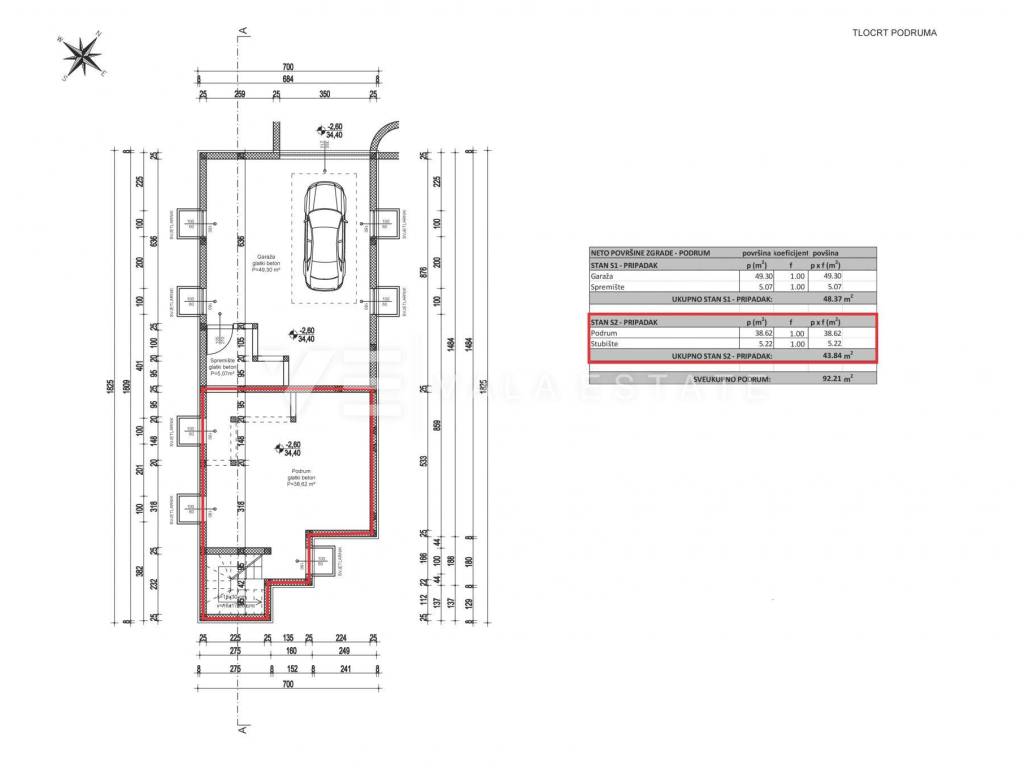 Real estate island Krk, Malinska - for sale is a new modern semi-detached house in a location only 650 m from the sea and the center with all amenities. The house occupies 124.14 m2 of living space distributed over the basement, ground floor and first floor, which are connected by internal stairs. In the basement there is a space of 43,84 m2 that can be arranged as desired. The ground floor includes a hallway, toilet, pantry, kitchen with dining room and living room with access to its own garden. There are two bedrooms on the first floor, each with its own bathroom and wardrobe. It has two parking spaces in the common yard of the house. Quality materials and equipment are used for the construction, which include floor coverings made of high-quality ceramics, quality sanitary facilities, multisplit air conditioning in all rooms, underfloor heating, built-in high-quality PVC joinery and burglar-proof doors. The property is currently in the initial phase of construction, and the planned completion is expected by the summer of 2025.