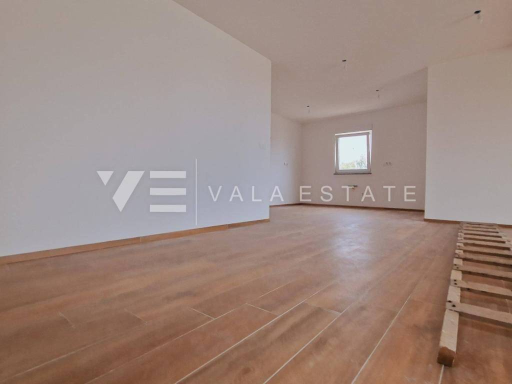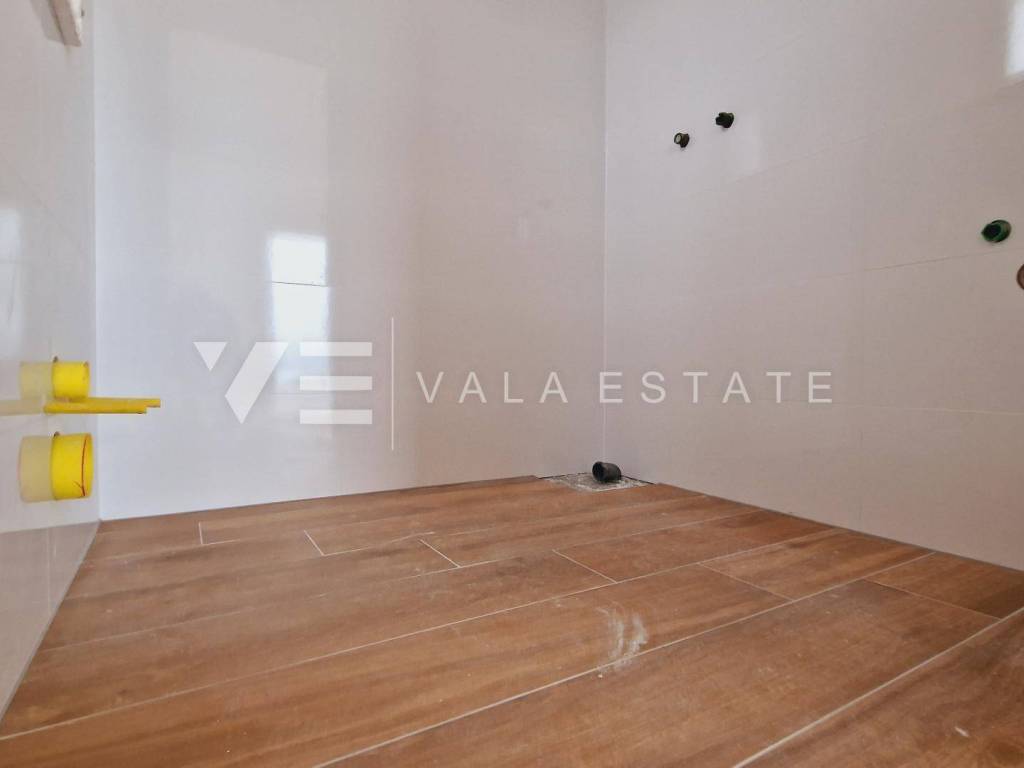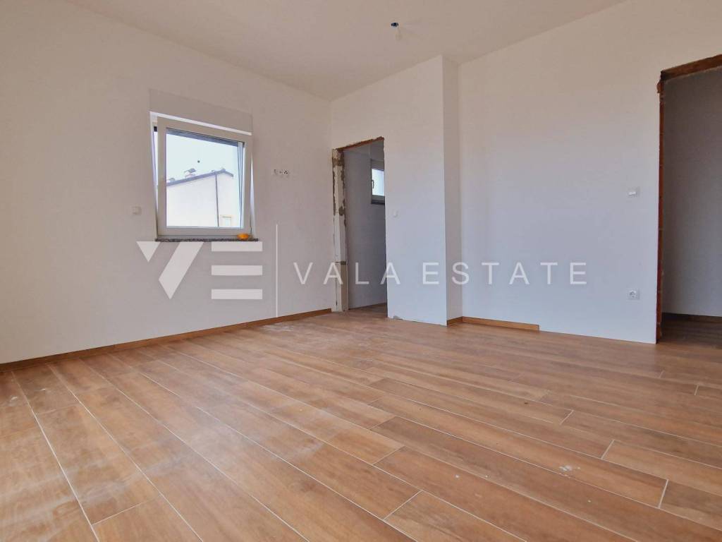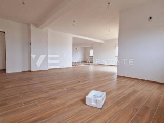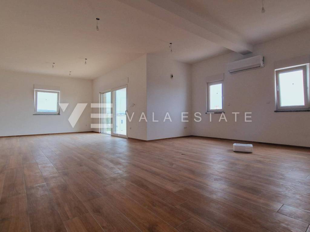 Real estate island Krk, Malinska - for sale is a new modern penthouse apartment with a beautiful view of the sea. The apartment is located on the entire second floor of a multi-family house with a total of five residential units and occupies 142 m2 of living space. It consists of an entrance hall, three bedrooms, two bathrooms, a toilet, a kitchen with a dining room and a living room with access to a covered terrace with a view of the sea. It also has two parking spaces in the common yard. PVC carpentry with electric shutters, air conditioning, underfloor heating, ceramic floor coverings and high-quality sanitary facilities are just some of the features of the quality of construction and equipment of this modern property. It is located in a great location, only 600 m from beautiful beaches and all facilities.