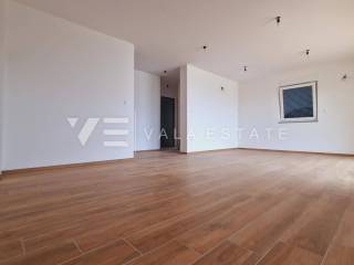 Real estate island Krk, Malinska - for sale is a new apartment with a total living area of 71 m2 located on the first floor of a new apartment building. It consists of an entrance hall, two bedrooms, a bathroom, a toilet, a kitchen with a dining room and a living room with access to a covered terrace with a beautiful view of the sea. It also has two parking spaces in the common yard. PVC carpentry with electric shutters, air conditioning, underfloor heating, ceramic floor coverings and high-quality sanitary facilities are just some of the features of the quality of construction and equipment of this modern property. It is located in a great location, only 600 m from beautiful beaches and all facilities.