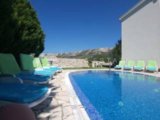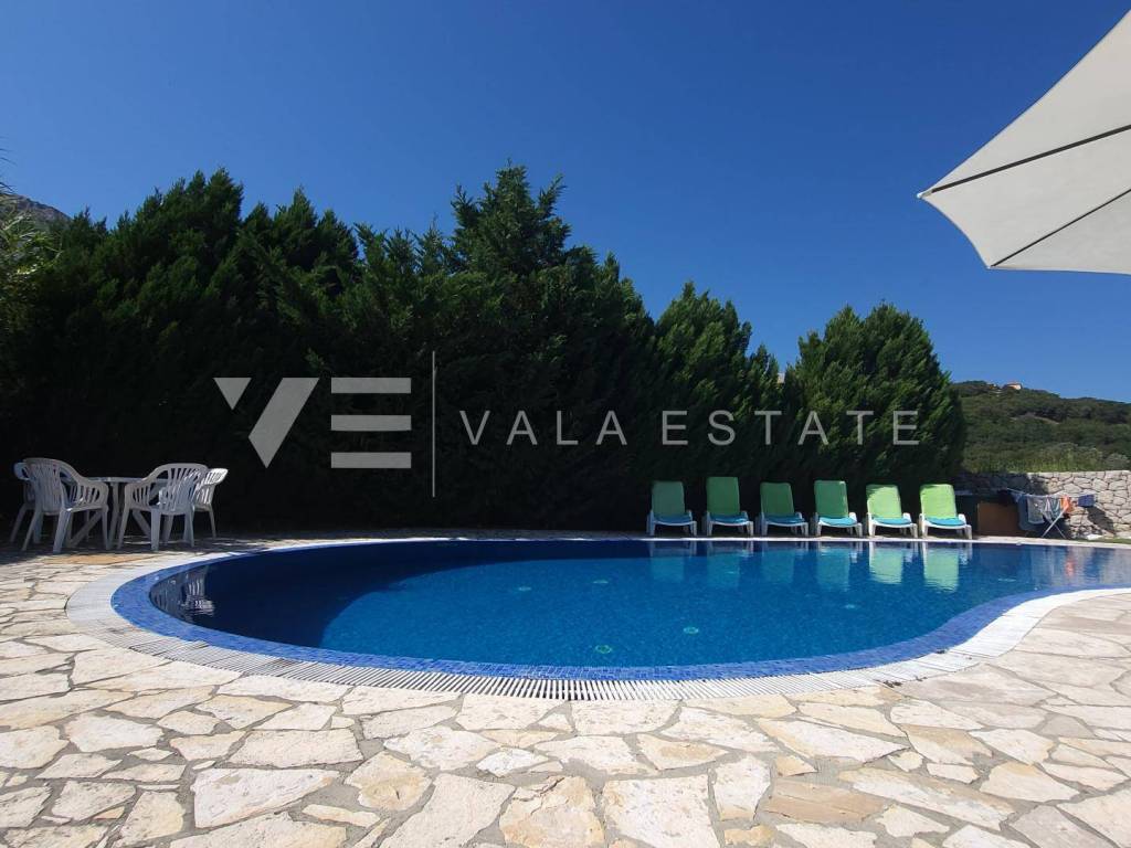 Real estate island of Krk, Baška surroundings - for sale a detached house with six apartments distributed within 450 m2, intended for tourist rental. Each apartment includes an entrance area, a bathroom, two bedrooms, a kitchen with a dining room and a living room with access to a balcony. The house has an engine room, wooden and PVC exterior carpentry, the units are air-conditioned, furnished and ready to move into. There is a swimming pool with a sunbathing area, a terrace and several parking spaces on a beautifully landscaped garden of 1092 m2. It is located in a quiet location 1900 m from beautiful beaches, the center and all facilities. This property is an exceptional investment opportunity for the purpose of tourist rental, given the well-established business with clearly defined income.