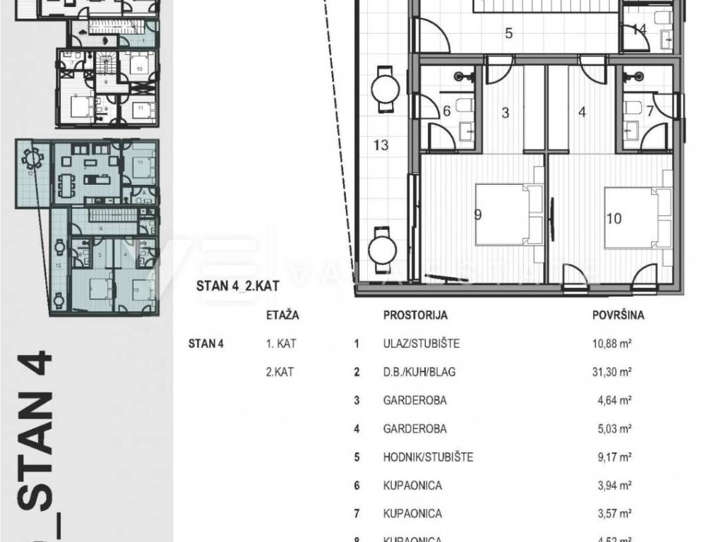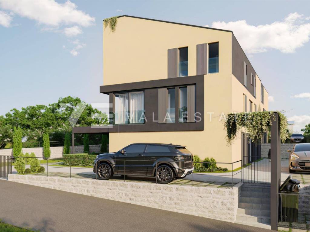 Real estate island Krk, city of Krk - in a very attractive location in the city of Krk, only 650 m from the sea and beach, for sale is a luxurious penthouse apartment located in a new urban villa with a total of four residential units. The apartment with a total living area of 146.25 m2 on the second floor includes an entrance hall, toilet, kitchen with dining room, living room, three bathrooms, three bedrooms, two wardrobes and two terraces with a view of the sea. High-quality construction and equipment, first-class ceramics and sanitary ware, aluminum joinery, underfloor heating and multisplit air conditioning are the main features of this luxurious new building. It has two parking spaces in the common courtyard of the building. The property is currently in the initial phase of construction, and the planned completion for occupancy is by the end of 2023.