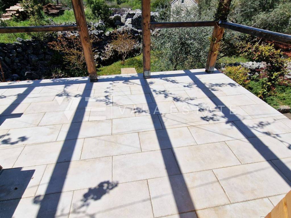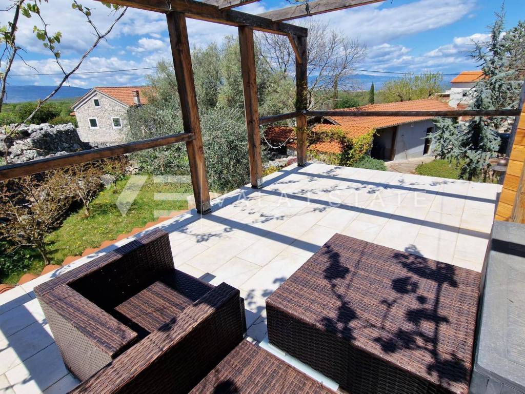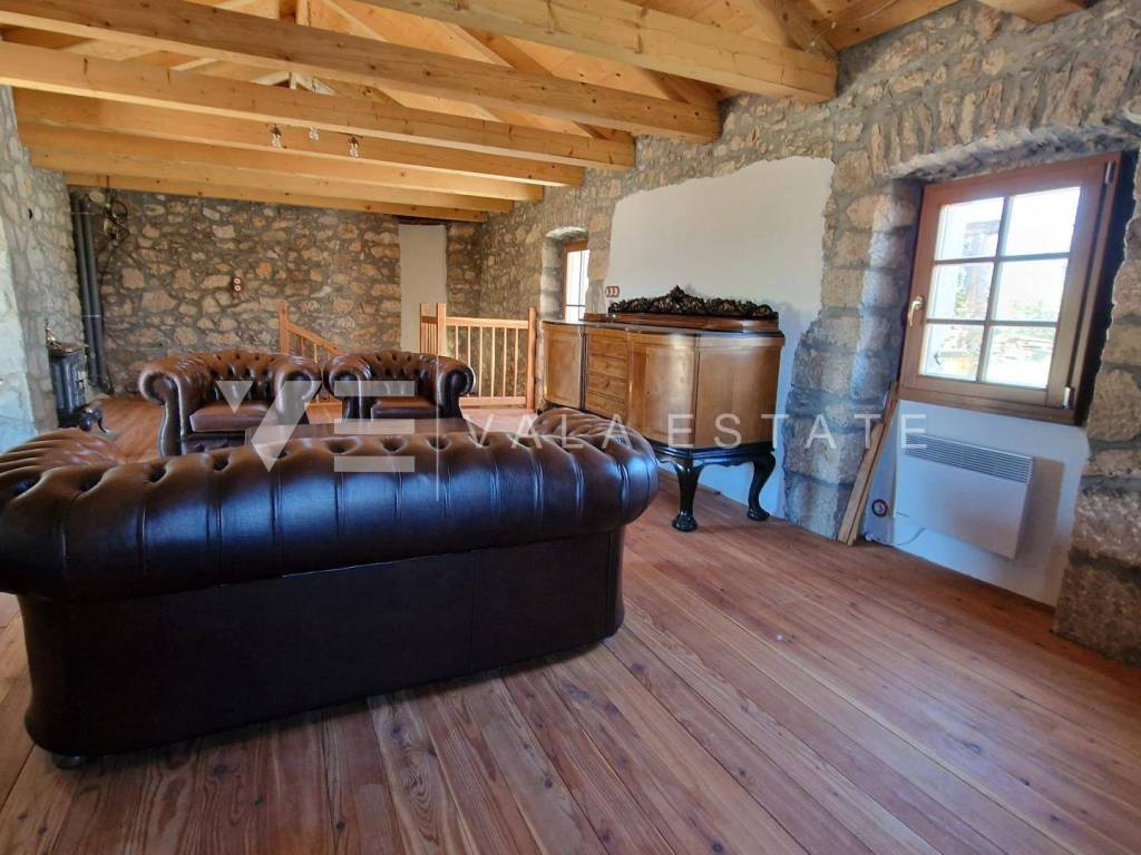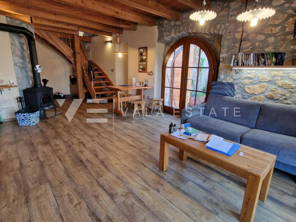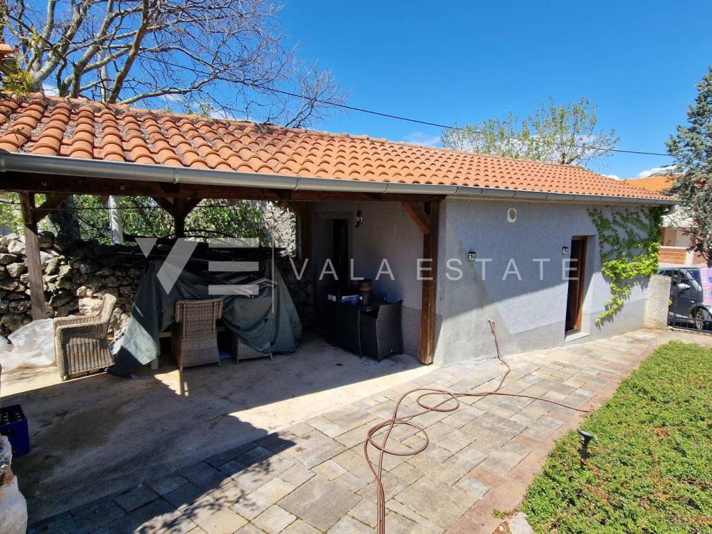 Real estate on the island of Krk, in the vicinity of Malinska - for sale is a renovated stone house, built on a plot of 456 m2. The house occupies a living area of 160 m2 and is divided into a ground floor and a first floor. On the ground floor there is a bathroom, bedroom, kitchen, dining room and living room with access to the terrace and garden. An internal staircase leads to the first floor, where there is a spacious room with an exit to the terrace with a view of the sea. The room can be converted into two bedrooms if necessary. Preparations for the bathroom have also been made on the first floor. There is also a smaller auxiliary building in the garden, which is decorated as a studio apartment. The house has been renovated and furnished in a rustic style in the interior and exterior. During the renovation in 2020, autochthonous elements and stone were kept. The house is surrounded by a beautiful garden of 350 m2 with a terrace, a summer kitchen and Mediterranean plants, and it is surrounded by an autochthonous dry stone wall. The house is ideal for investment in a holiday home for tourist purposes, but also for all lovers of coastal architecture. The location is beautiful and peaceful, surrounded by greenery and approx. 2500 m from the sea.