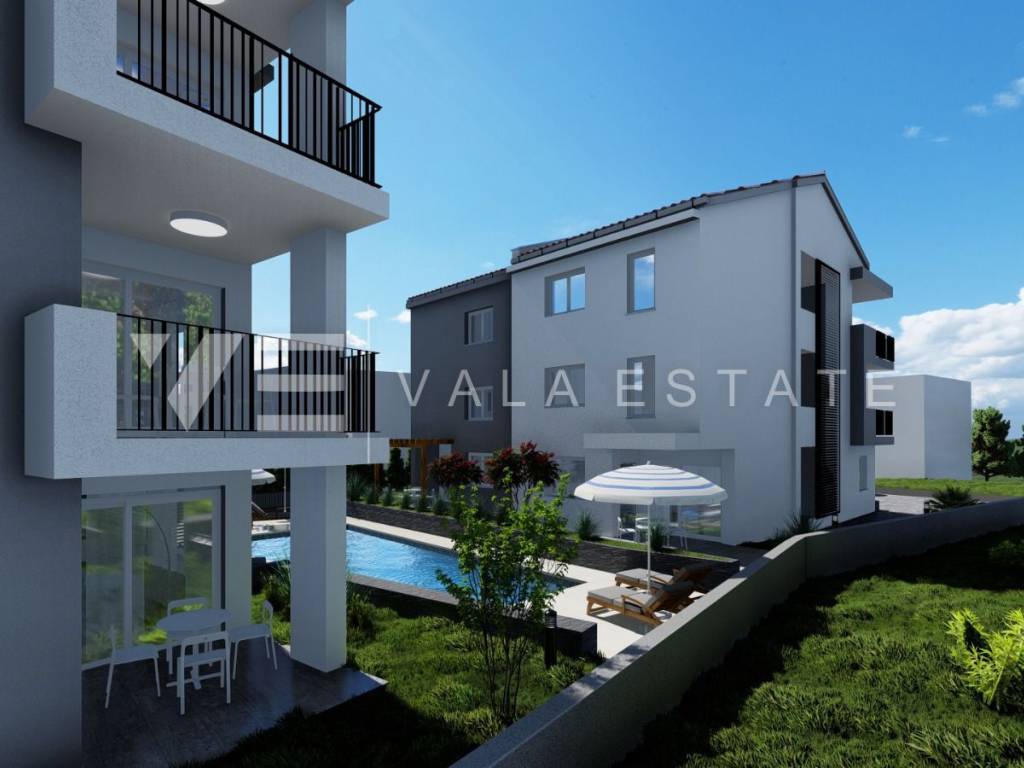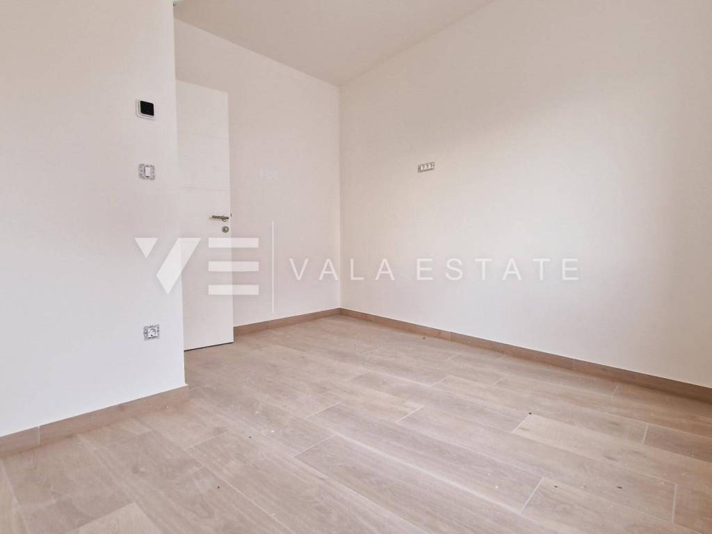 Real estate island of Krk, Šilo - for sale is an apartment on the first floor of a new multi-family house with a total of three residential units. The apartment of 63.40 m2 consists of an entrance hall, two bedrooms, a bathroom, a kitchen with a dining area and a living room with access to a balcony with a view of the sea. It has one parking space and a common swimming pool that is jointly owned by all tenants. Quality construction and equipment that includes underfloor heating in the bathroom, room air conditioning, sanitary ware and ceramics. VAT is included in the purchase price. It is located in a quiet location, about 400 m from the sea and beautiful beaches and not far from the center of Šilo.
