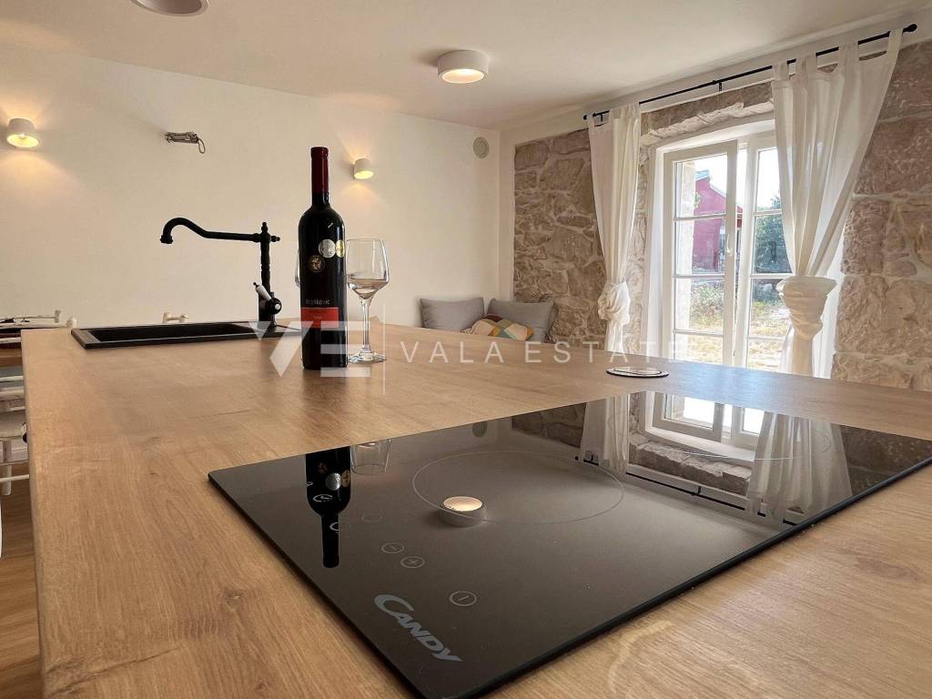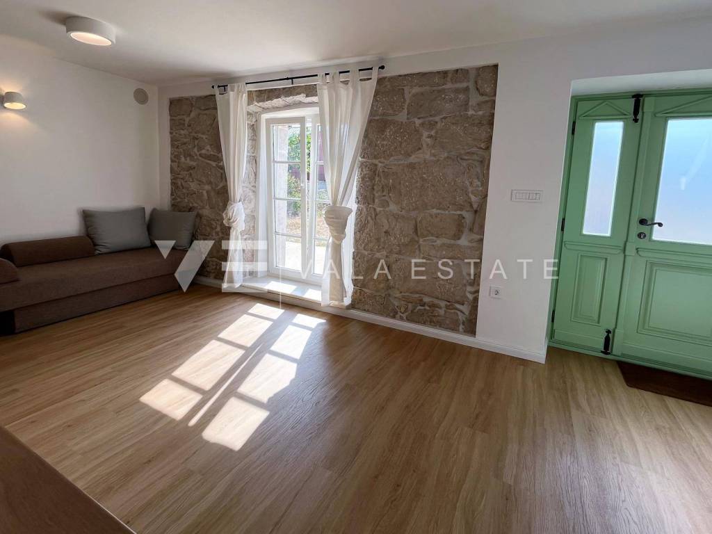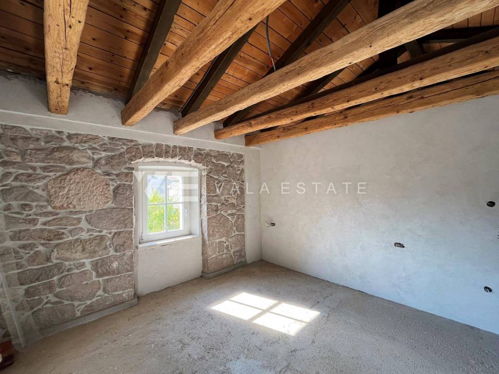 Real estate island of Krk, Malinska wider area - stone autochthonous house for sale that dates back to 1886 and is a real gem of a coastal house. Built on a plot of 1050 m2, it consists of a ground floor and a first floor with a living area of 145 m2. On the ground floor there is a spacious living room and a kitchen with a dining area, one bedroom and a bathroom. Upstairs there are two bedrooms, each with its own bathroom that needs to be finished, one of which has an exit to the terrace. An auxiliary facility serving as a storage facility is attached to the house. The house has great potential, which offers the new owner the possibility of individual completion of the premises, and the construction of another building or swimming pool in the garden. It is located in a quiet location surrounded by family houses. The distance from the sea and the beach is 3000 meters.
