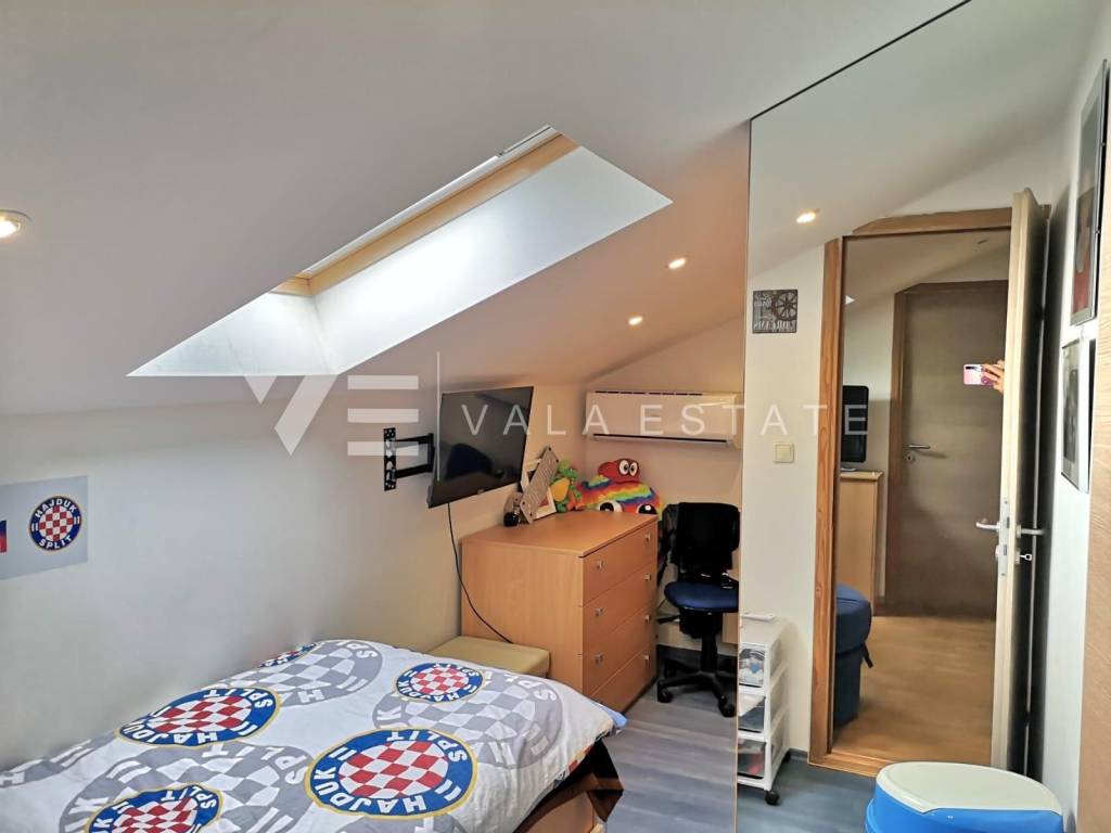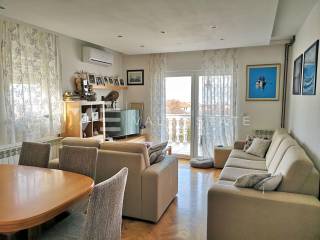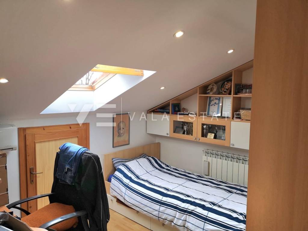 Real Estate Island Krk, Malinska - for sale is a two-story apartment with an excellent layout on the second floor and attic of the building. The 54 m2 apartment consists of a living room with a dining room and a kitchen, a bathroom, one bedroom and a terrace with a beautiful view of the sea. Internal stairs lead to the attic where there are three bedrooms, a toilet and a boiler room. The apartment has one parking space. Nice location near all amenities and beaches, which are only 600m away.