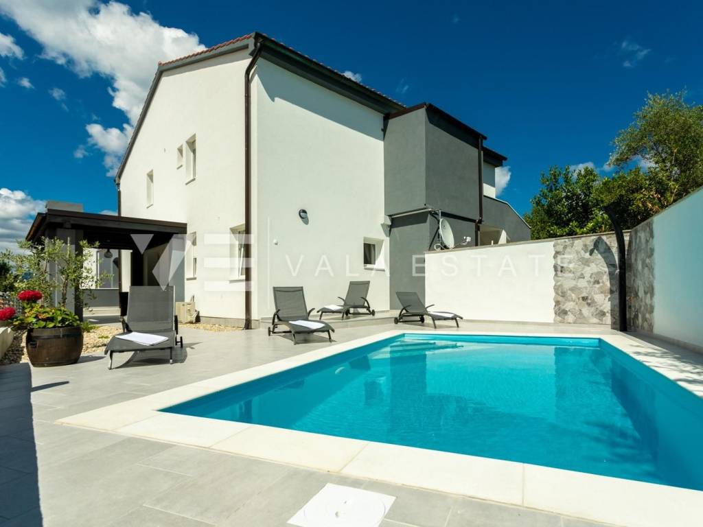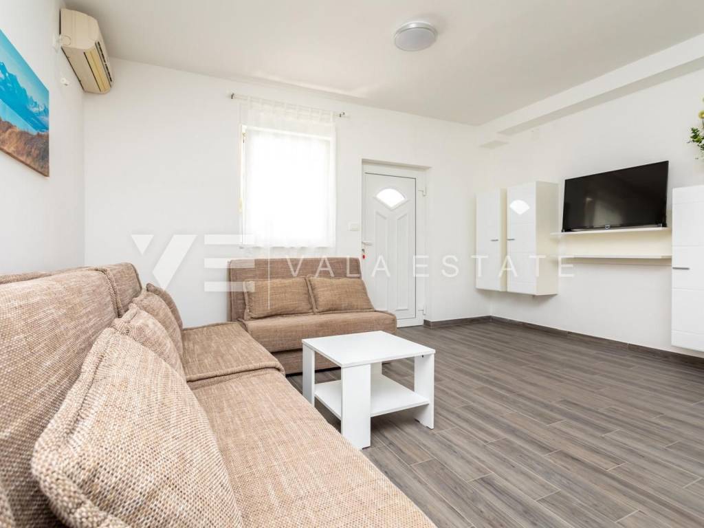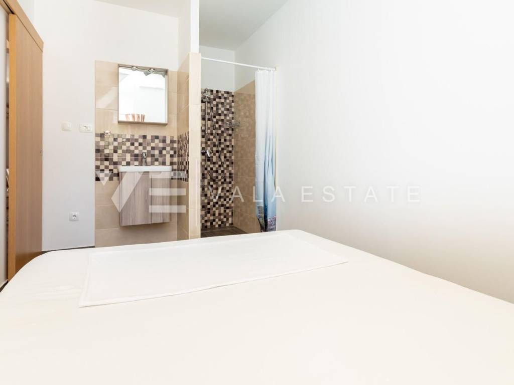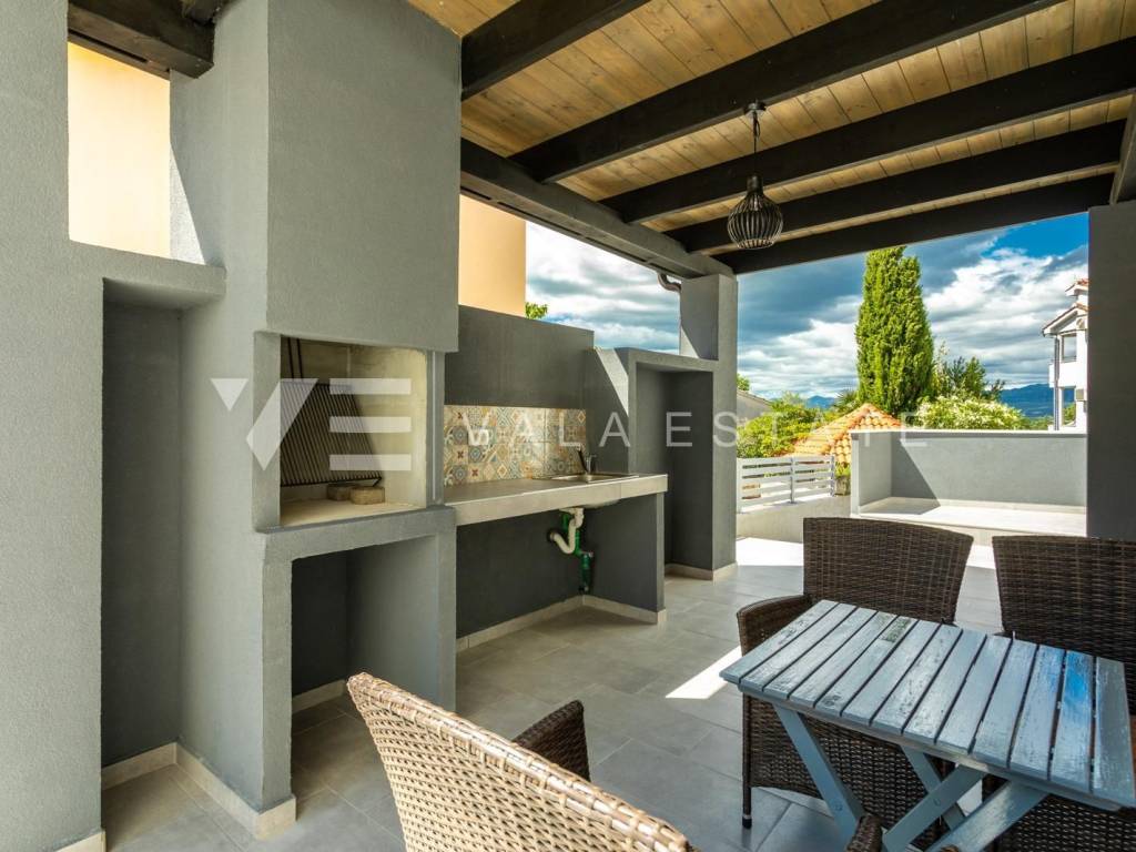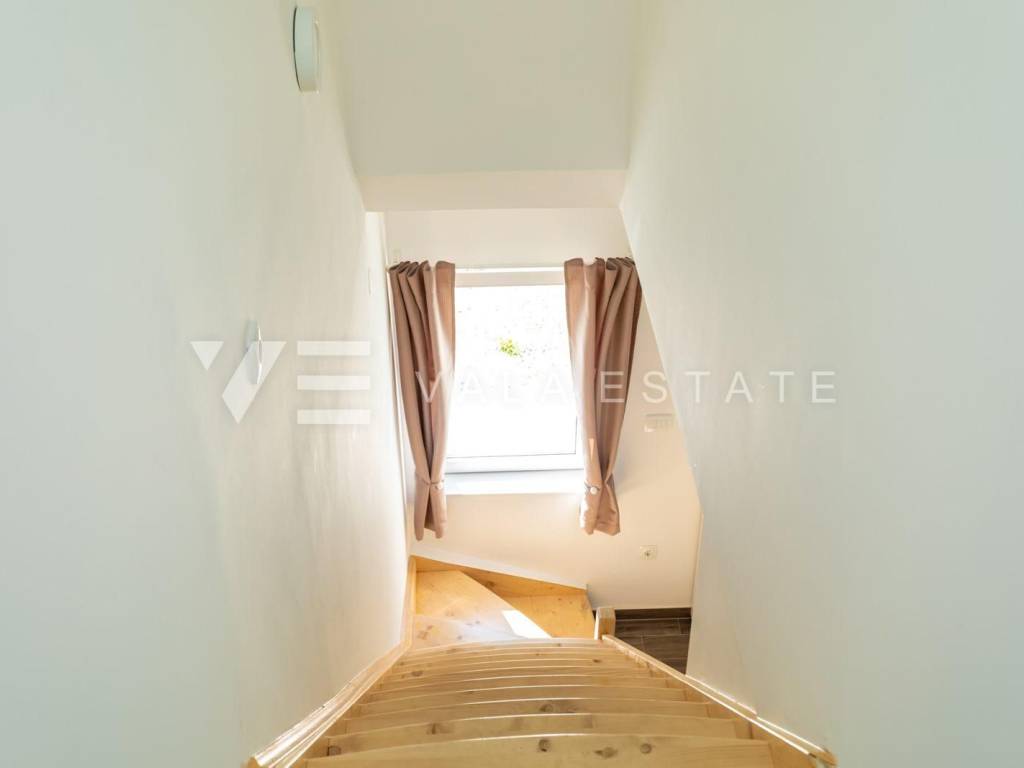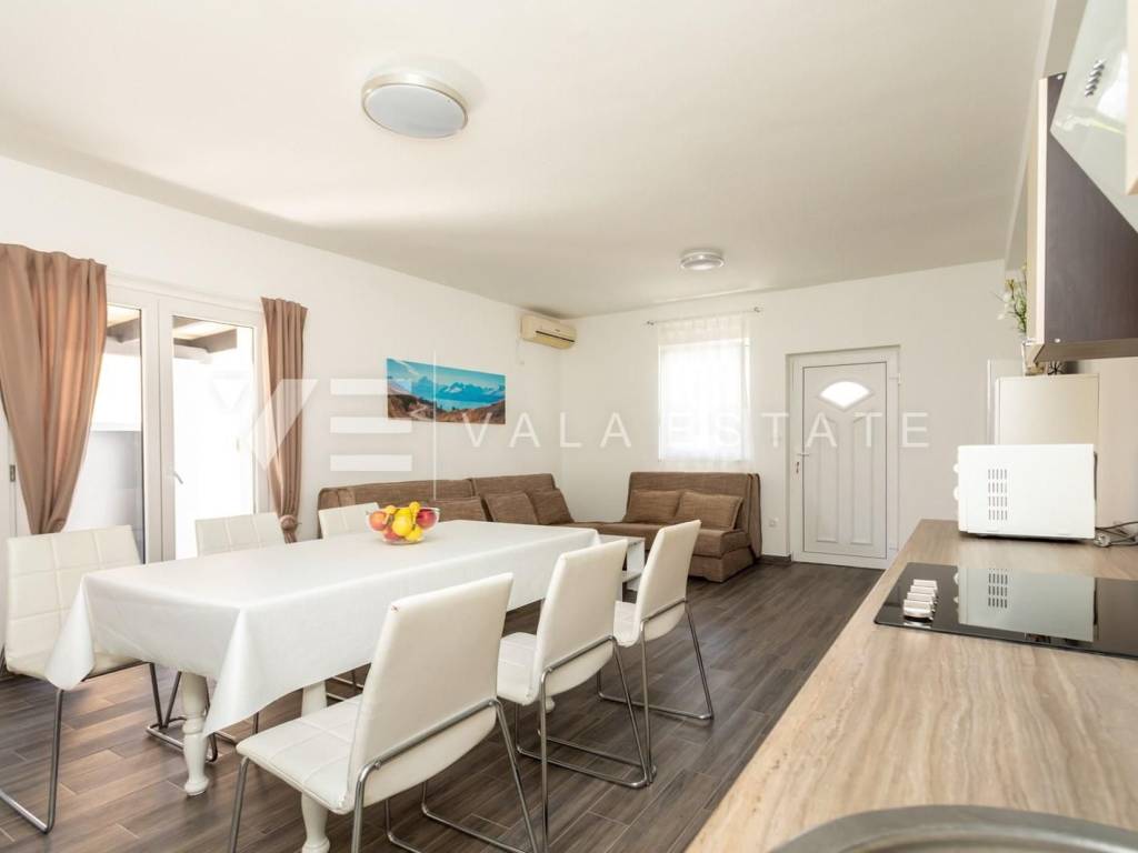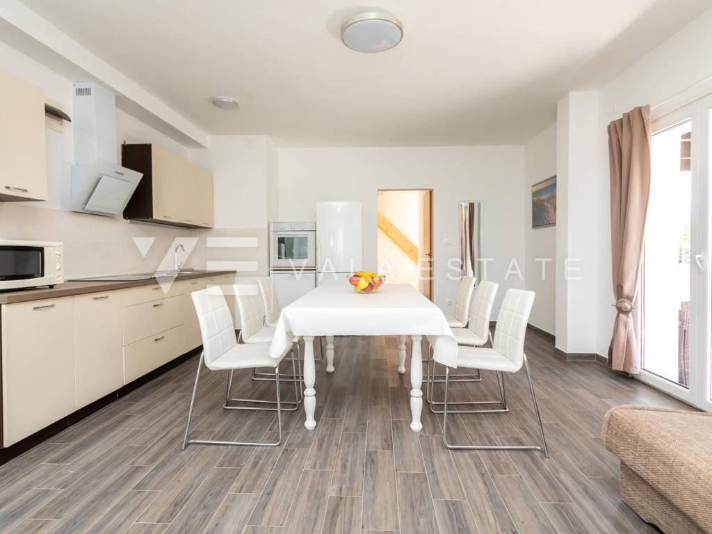 Real estate Krk island, Soline bay - for sale is a semi-detached house in a great location, only 100 m from the beautiful beach. The house covers a living area of 110 m2 spread over two floors. The ground floor has a kitchen with dining area, living room, bedroom and toilet. Upstairs are two bedrooms, bathroom, kitchenette, living room and terrace with beautiful sea views. The landscaped garden has a swimming pool, sun deck, summer kitchen with barbecue and several parking spaces, two of which belong to the property. Proper documentation. An opportunity for everyone who wants to make money from tourism!