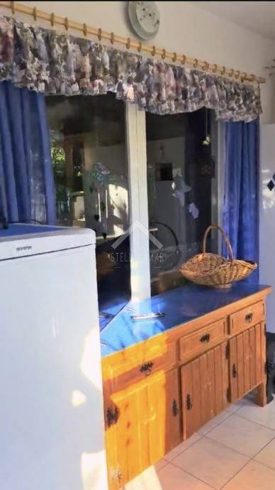 On the ground floor there is a living room with a kitchen and dining room, a bathroom, a bedroom and a room with a walk-in wardrobe. External stairs lead to the first floor of the house, where there are two bedrooms and a spacious terrace. There is a water heater and an additional toilet under the stairs.