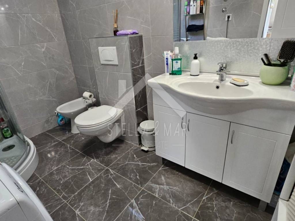 The area is approx. 90m2. Two-room apartment with an area of 78.80 m2 consists of a hallway, a spacious living room with a kitchen and dining room, two bedrooms, a bathroom and a terrace. Next to the apartment there is also a smaller studio with a living room and a bathroom.