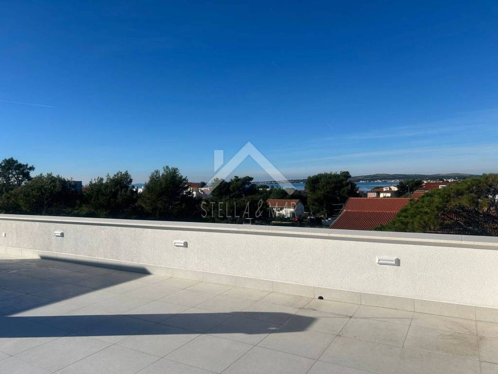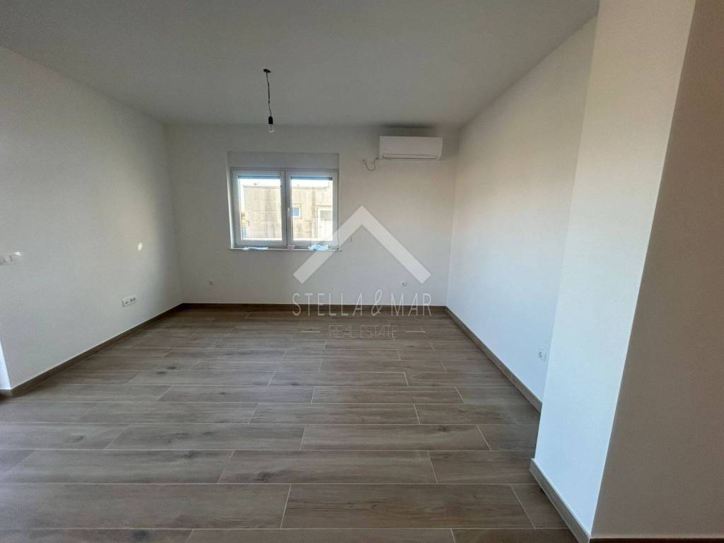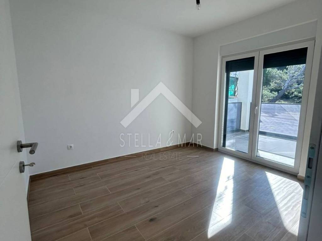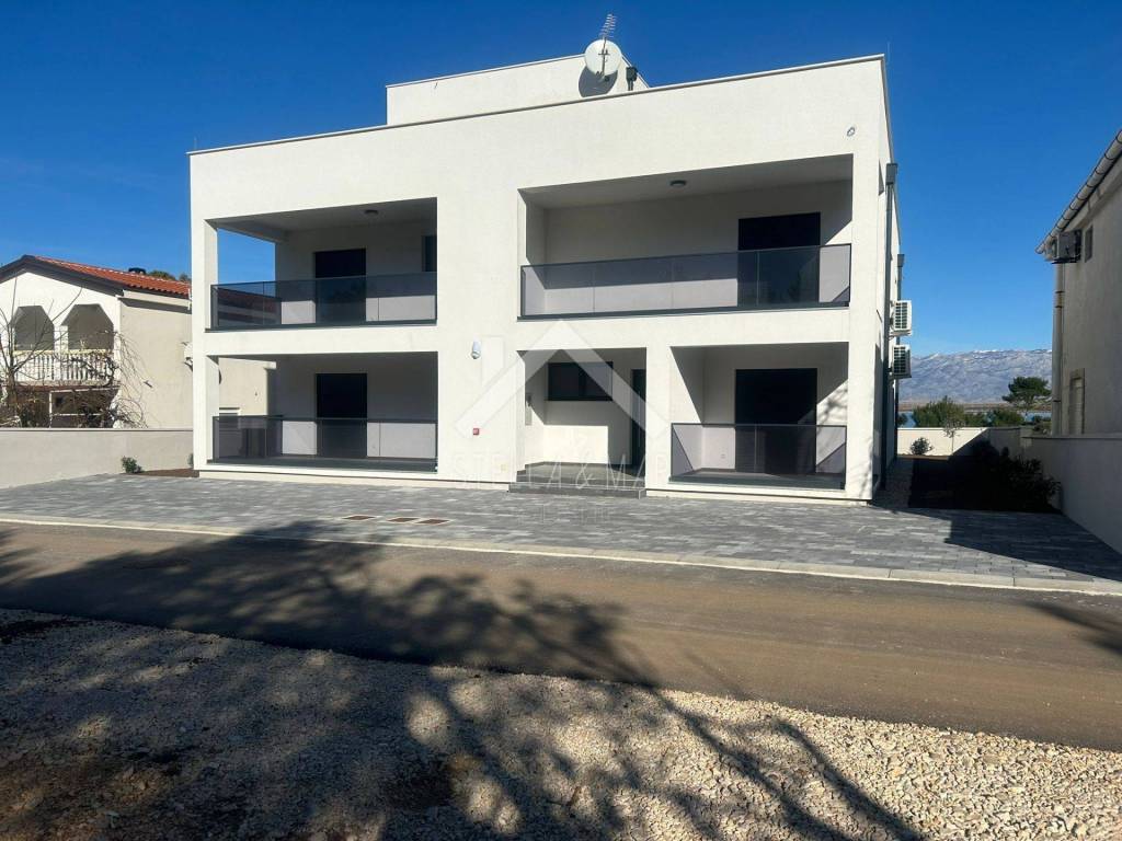 An apartment for sale in a new building near the sea on the island of Vir. It is located on the 1st floor of a smaller residential building. The property was built to a very high standard, according to the highest construction standards. The apartment is ideal for a peaceful and relaxing vacation. Also, an excellent investment for a tourist rental. The comfortable terrace offers a wonderful view of the sea.