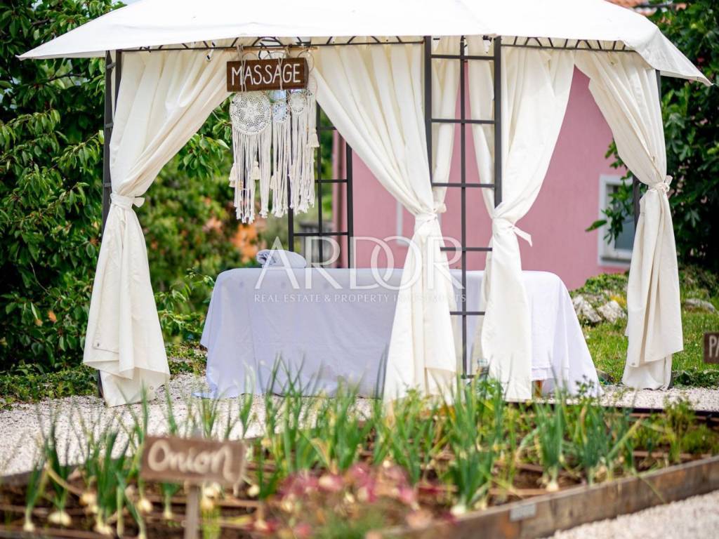Cjelokupni kompleks sa vilom, garažama, grijanim bazenom od 33 m2, vanjskim barom i terasom koja uključuje i dio sa sjedećom garniturom, održavanim i uređenim povrtnjakom, voćnjakom i drugim sadržajima već nekoliko godina uspješno posluje u turizmu. Imanje se proteže na zemljištu površine 1667 m2, a sama vila sastoji se od suterena, prizemlja te 1. i 2. kata.