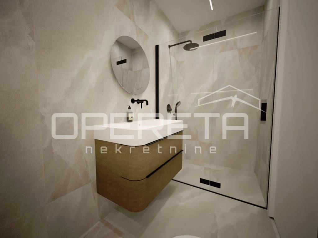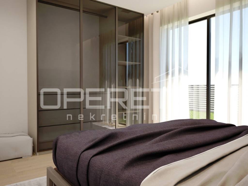 The apartment is located on the ground floor of a modern building with an elevator and is characterized by top-quality construction and a carefully designed layout. Thanks to large glass surfaces, the interior is bright and airy, while the pleasant garden of 80 m² offers the perfect place to relax and enjoy the outdoors.