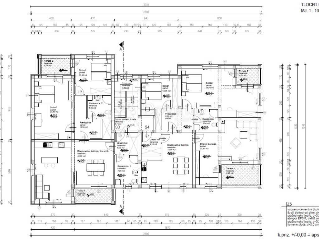 Planirano je formiranje četiri odvojene jedinice, svaka površine približno 120 m po dvije na svakoj etaži.