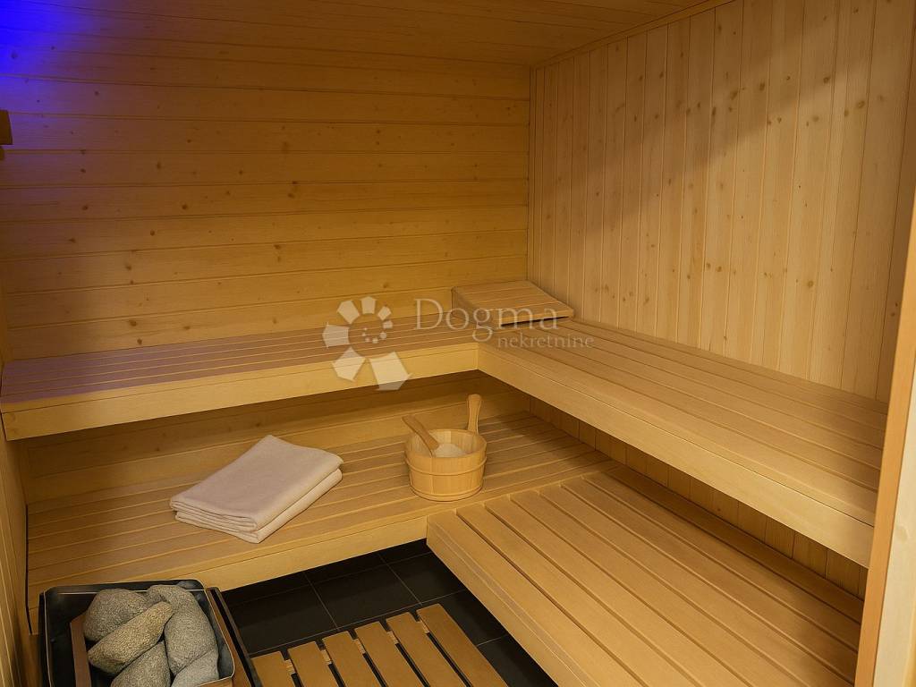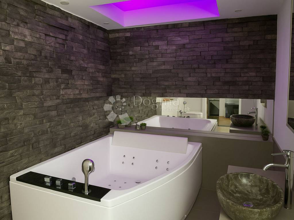 Osijek - luxury designer apartment with wellness, garage and private basement For sale is an exclusive designer apartment located in the heart of Osijek, in an urban villa with a total of two floors. The apartment is located on the first floor and bears the signature of the renowned designer Jelena Havelka, who designed every detail of the space with special care, combining comfort, aesthetics and functionality. The apartment with a total area of 102m2 provides the perfect balance of modern luxury and the warmth of home, and consists of a living room with dining room and kitchen, children's room, study (walk-in closet), wellness room, bathroom, hallway, two terraces and storage room. The apartment comes with a garage for one vehicle, private basement and parking space in front of the building. Wellness room - a private oasis of peace The special feature of this apartment is the impressive wellness room with a jacuzzi for two people, a Finnish sauna for four people, a bed, LED lighting in colors, a remote-controlled starry sky, a massage table and a decorative stone-clad wall. The space offers the complete atmosphere of a luxurious spa environment in your own home. Children's room a world of imagination and play Painted in a jungle theme, with bedding, curtains and details in the same tone. The room has a swing, tatami floor, 120200 cm bed and a cloud-shaped ceiling with colored LED lighting - a real paradise for little ones. Living room and kitchen The living room exudes elegance - it is equipped with an electric fireplace with LED backlight, relax armchairs, a large oval sofa and a TV, with colored lighting with remote control. The kitchen is designed with an emphasis on details: a bar with lighting, bar stools, built-in dishwasher, refrigerator, oven and water filter, and a dining table with a designer chandelier. Additional features - Brand new household appliances - Custom-made furniture - High-quality lighting and electronic systems with remote control - A building with a total of two apartments - peace and privacy For more information and a viewing, please contact us with confidence. Matijas Milevoj 091 161 99 18 matijas.milevoj@dogma-nekretnine.com