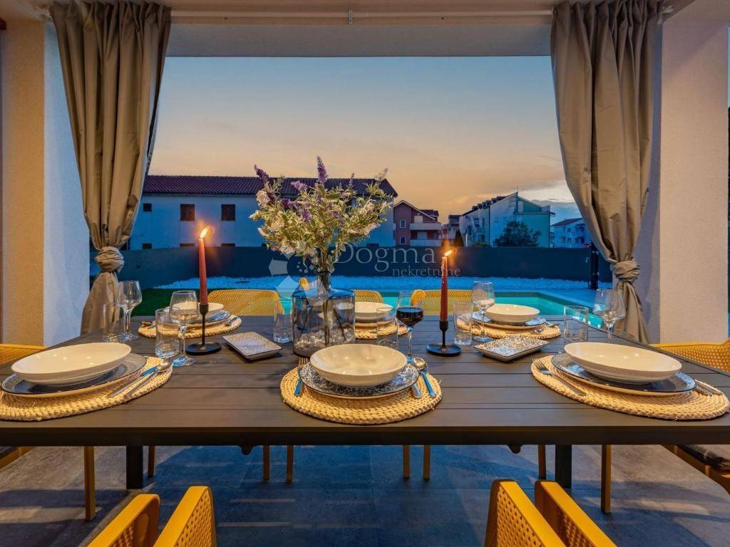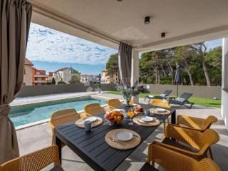 Modern villa with swimming pool, 100 m from the sea Povljana, island of Pag For sale is an elegant and fully equipped 4-star villa, located just 100 meters from the sea and beach, in a quiet part of Povljana on the island of Pag. With a total area of 140 m, with a landscaped garden of 400 m, this property offers the perfect combination of luxury, comfort and privacy - ideal for a vacation or tourist investment. On the ground floor there is a spacious open-space living room with kitchen and dining room, guest toilet and laundry room. The living room offers direct access to the terrace and the 8x4 m swimming pool, equipped with an automatic maintenance system and a heat pump for heating and cooling water. On the first floor there are three air-conditioned bedrooms, each with its own modern bathroom. The floor offers a beautiful view of the sea. The villa is equipped with underfloor heating in the bathrooms, air conditioning in each room, solar collectors for hot water, satellite television and WiFi. The yard is fenced and landscaped for complete privacy, with several parking spaces. It is located in the residential part of Povljana, near beaches, restaurants and all facilities, but secluded enough to ensure peace and comfort. The villa has all documentation, is properly owned and ready for a new owner. Contact: Matijas Milevoj Dogma nekretnine E-mail: matijas.milevoj@dogma-nekretnine.com Mobile: 091 161 99 18