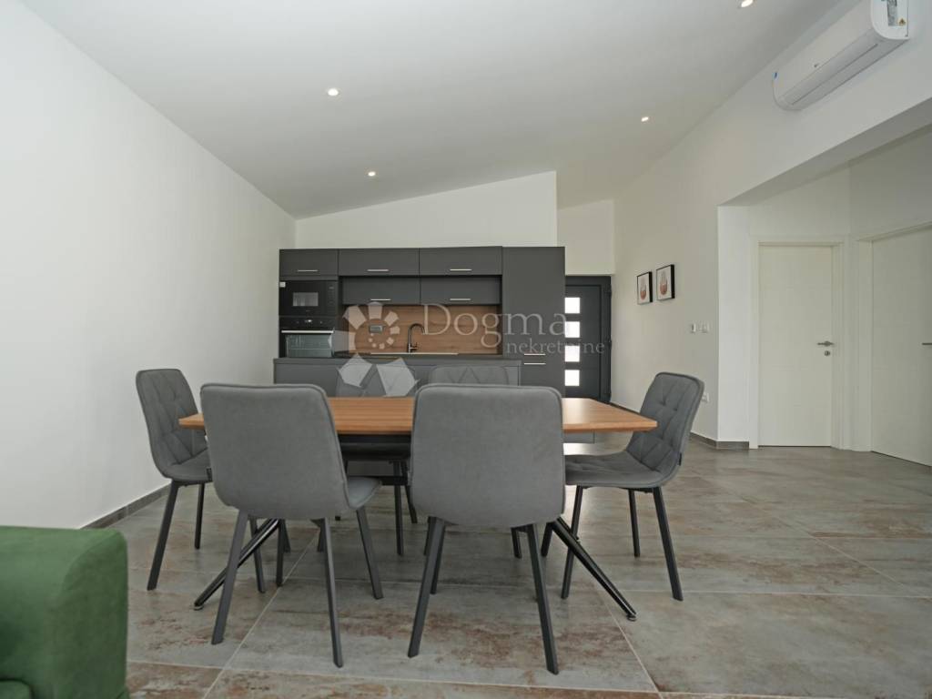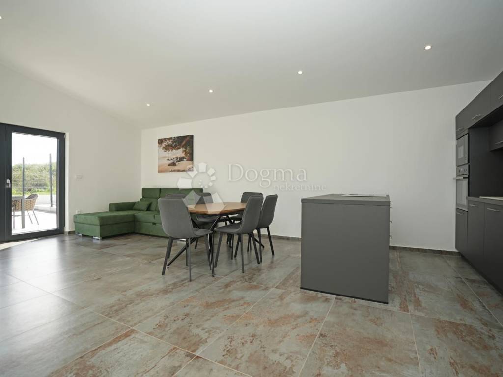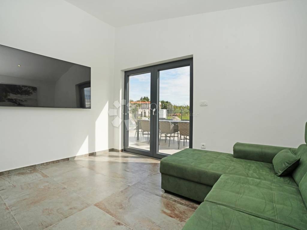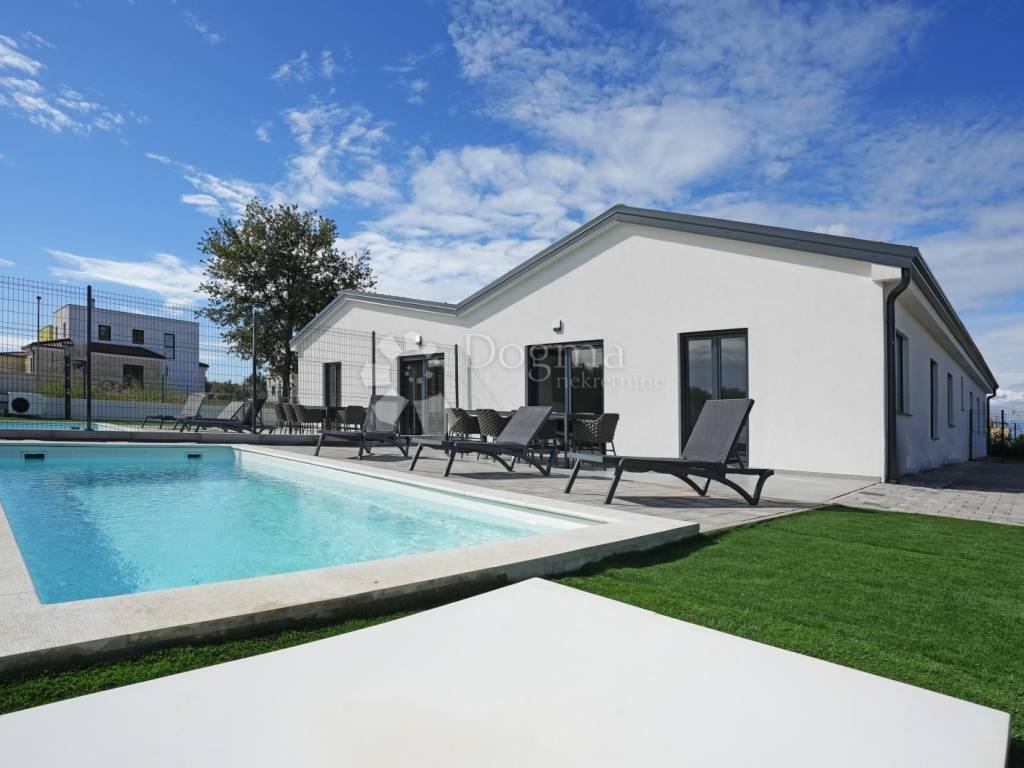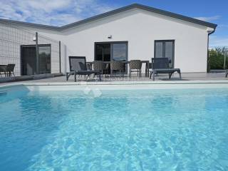 POREČ (surroundings) - Single-storey house with heated pool Welcome to your new modern oasis - a newly built, breathtaking single-storey house, located just a few minutes' drive from Poreč! This house, equipped with top-quality furniture, perfectly combines functionality and style, providing the warmth and comfort that your family deserves. Its net living area is 80m2 with a perfect layout, while the terrace is approximately 30m2. You enter through an elegant hallway that leads you to an open space with a kitchen and dining area, ideal for family gatherings and friendly socializing. The spacious living room with access to a covered terrace invites you to enjoy the fresh air, regardless of the season. This house offers three modern bedrooms, one of which has direct access to the terrace and a beautiful heated pool, as well as an en suite bathroom that guarantees intimacy and comfort. The other two bedrooms, ideal for family members or guests, share a practical bathroom, providing the necessary space for everyone. Built with care from quality materials, this house includes all modern amenities, including underfloor heating and air conditioning, so you will always have the ideal temperature within your four walls. Aluminum windows with electric roller shutters provide superior functionality and energy efficiency. The garden has a beautiful sundeck and heated pool that extend the summer season and create the perfect place to relax with family or friends. This property is not only ideal for living, but also represents an excellent opportunity for tourist rental, thanks to the proximity of all amenities. So that all your guests always have somewhere to park, the house also offers two parking spaces. Take a peek into your new lifestyle in this extraordinary house that offers everything you need for a comfortable, modern and carefree life! For all information and viewing, please contact Marija Šantor Licensed Agent Mob. 0922827379 marija.santor@dogma-nekretnine.com