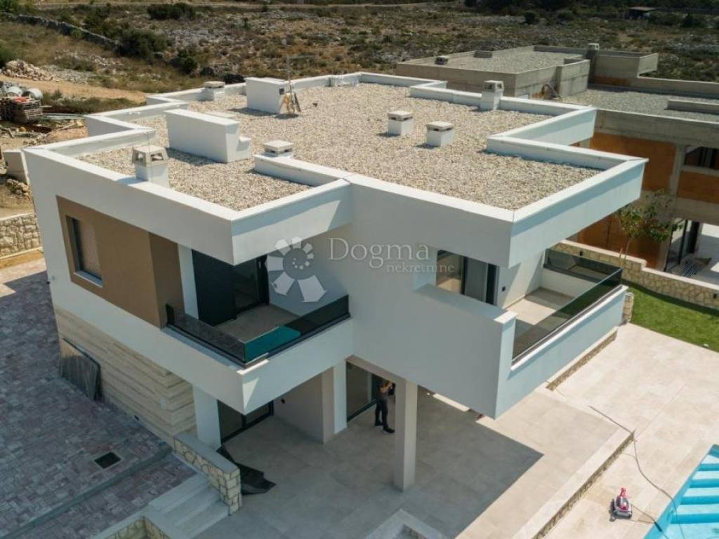 For sale is a newly built villa located in a quiet neighborhood just a few minutes drive north of Novalja. The villas location gives it an advantage over others, as it offers a magnificent view of the Adriatic Sea and the islands. On the horizon, from southeast to northwest, you can see the island and town of Pag, Vir, the island of Ugljan, Dugi Otok, and the island of Cres, behind which the sun sets, enhancing an already magnificent view.